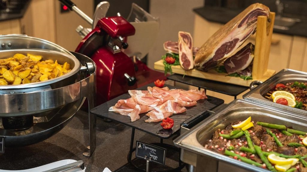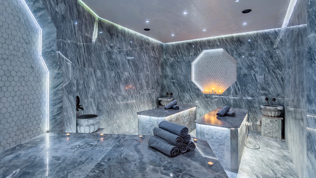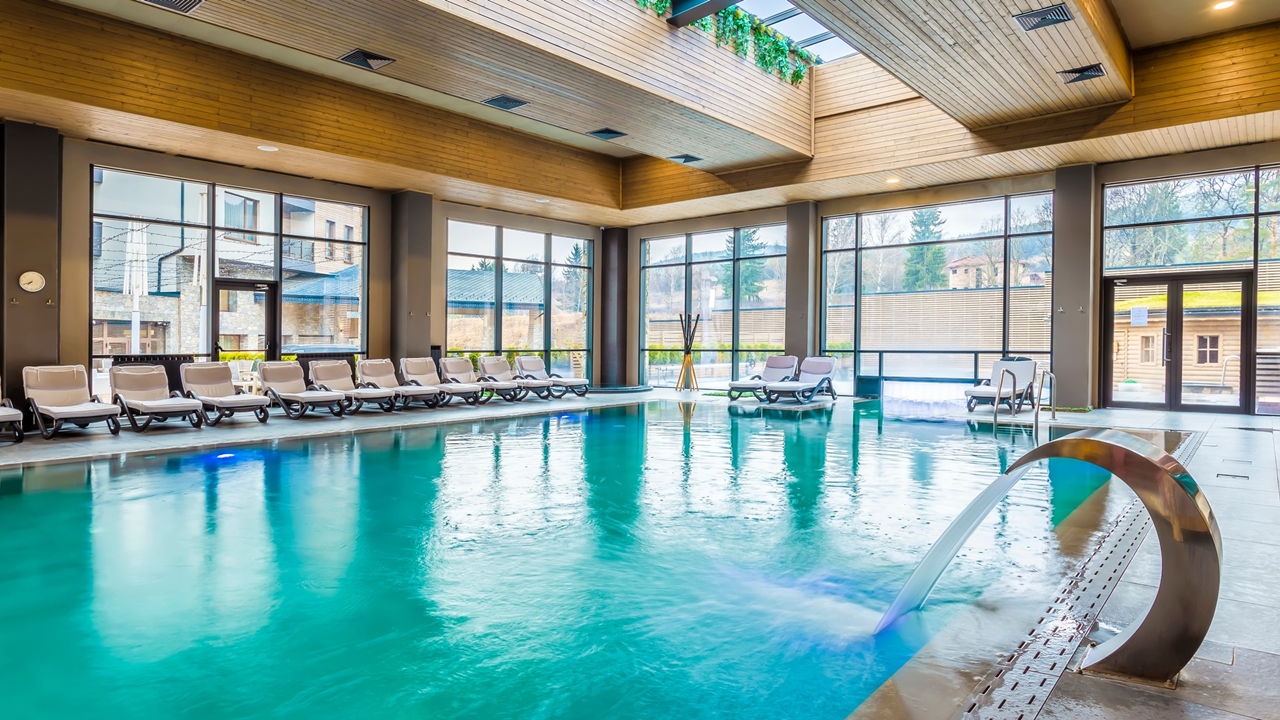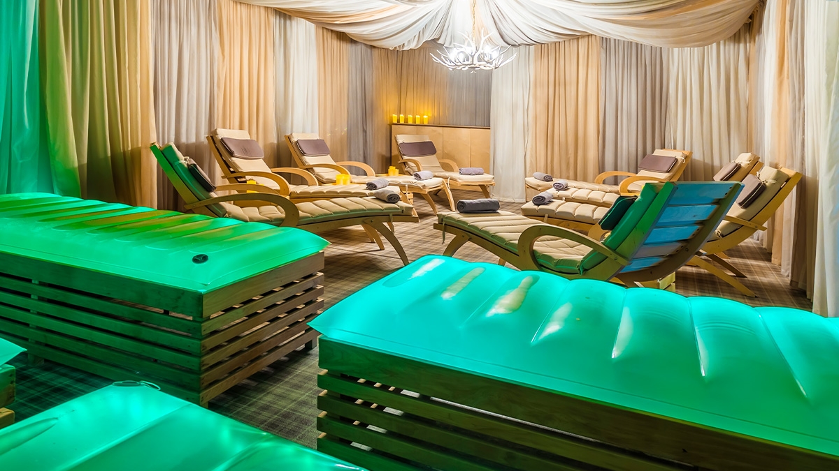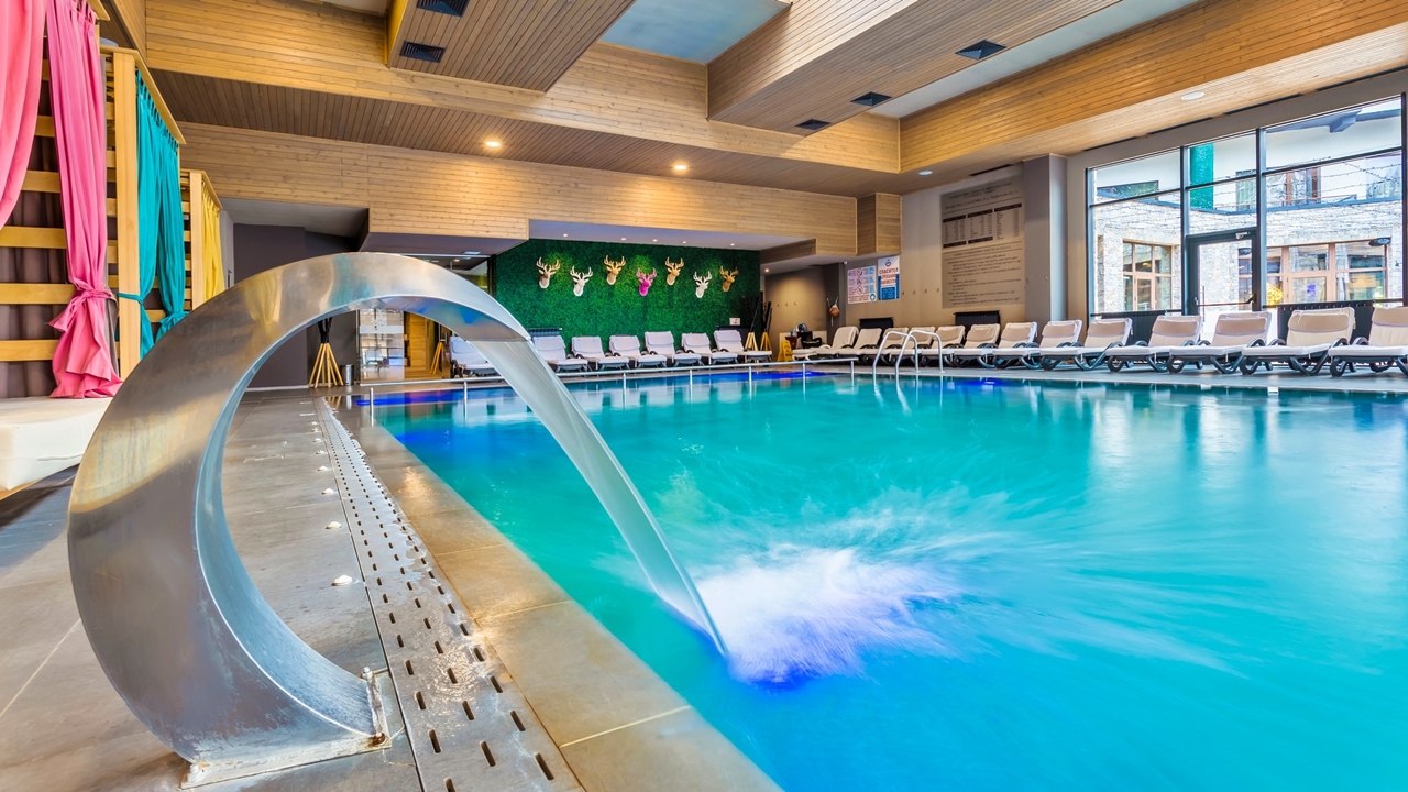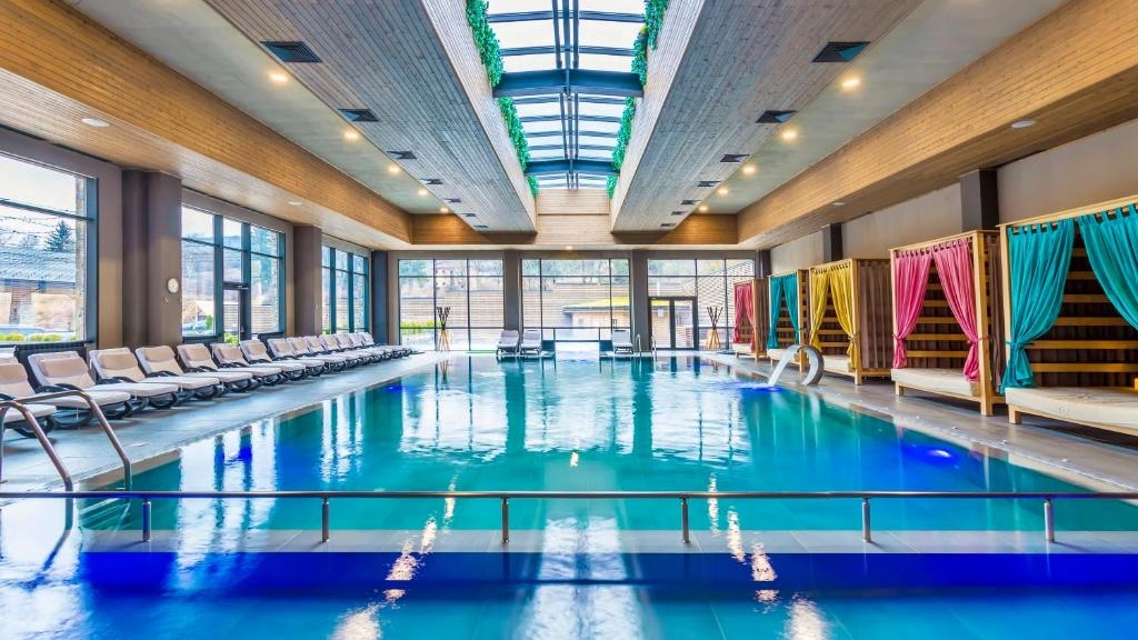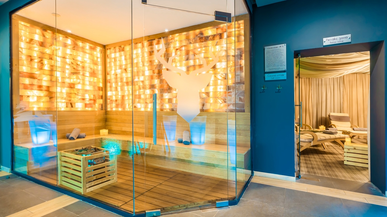 • СПА зона: билкова сауна, финландска сауна, инфрачервена сауна, солна стая, турска баня, арома парна баня, солна парна баня, приключенски душове, зона за релакс с топли водни легла, леден фонтан