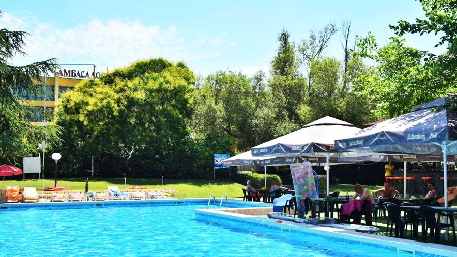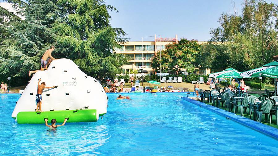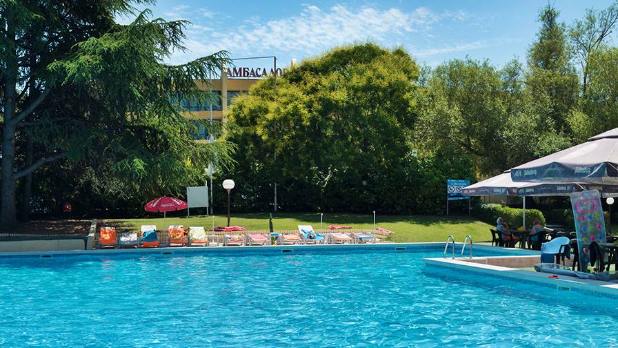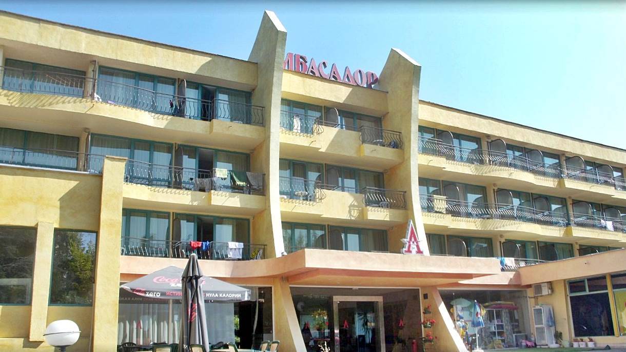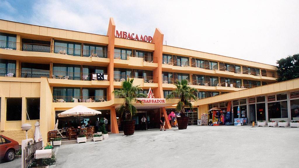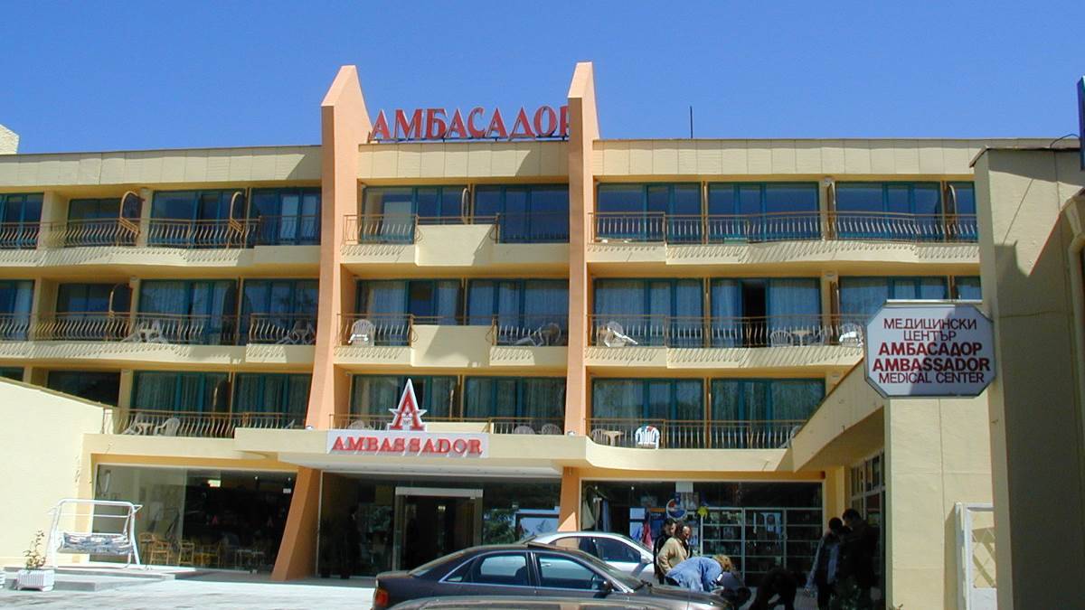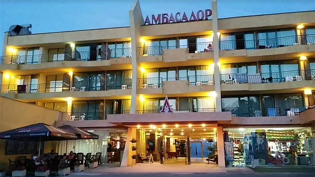 Хотел Амбасадор, Златни пясъци, е разположен само на 30 метра от морския бряг на курортния комплекс. Хотелът се намира в парк и е обграден от зеленина. Всяко едно от помещенията е с балкон и е напълно оборудвано, което го прави перфектен избор за семейната морска почивка. Тук можете да се възползвате от открит басейн или да се насладите на красивия плаж, който е само на 30 м. от хотела.