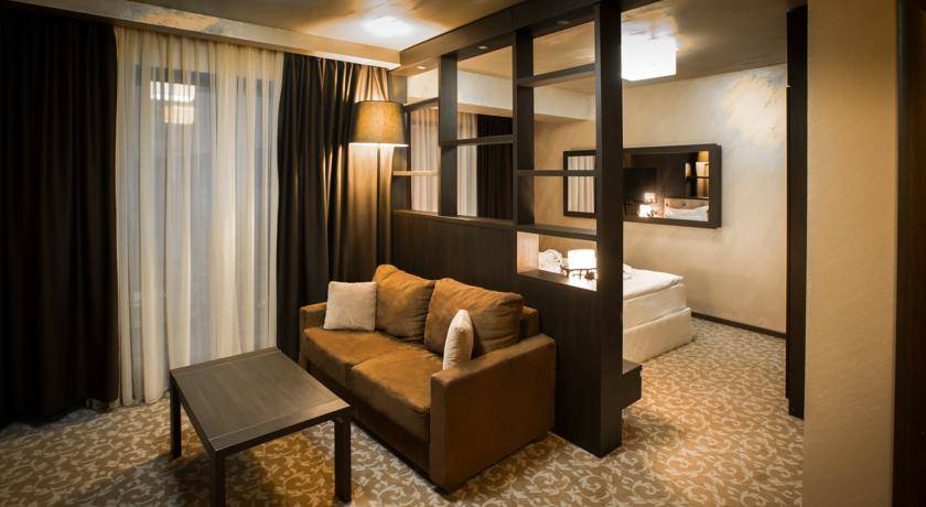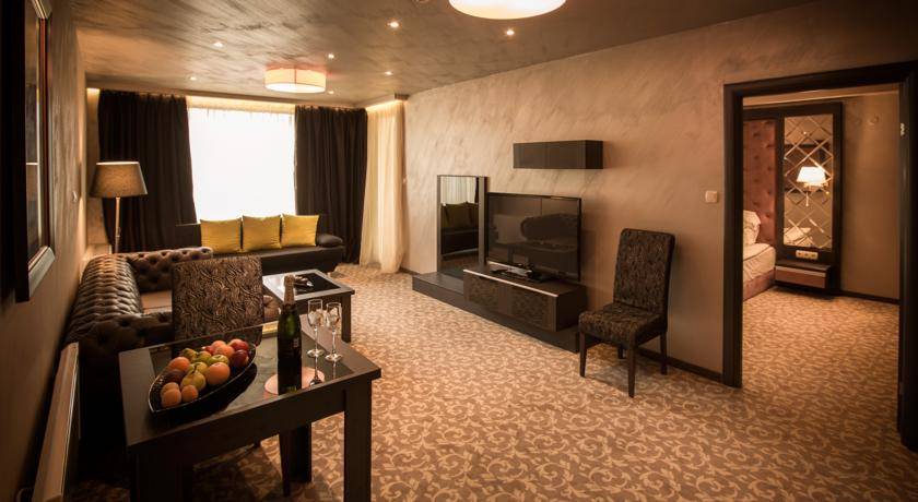- двойна стая лукс - Луксовите стаи са с площ около 40 кв.м. и разполагат със спалня, разтегателен двоен диван, баня с душ кабина или вана, бюро, LCD телевизор с кабелна телевизия, мини бар, централно отопление, телефон, интернет, сешоар, паник бутон и балкон
