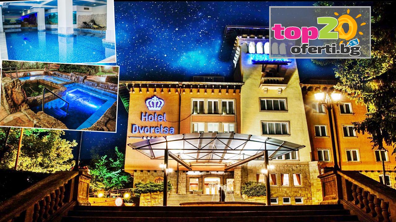 СПА Хотел Двореца, Велинград, e с луксозен 5-звезден хотел, разположени в СПА столицата на Балканите - гр. Велинград. Хотелът разполага с луксозни помещения, минерални басейни, джакузита, лоби бар, ресторант с лятна градина, фитнес, тенис корт, паркинг и други удобства. в СПА Хотел Двореца можете да се насладите на един от малкото целогодишни открити минерални басейни, външен и вътрешен детски кът, както и детски сезонен басейн с аквапарк. Само на около 3 км. от хотела се намира езерото Клептуза - единствения карстов извор на Балканския полуостров.