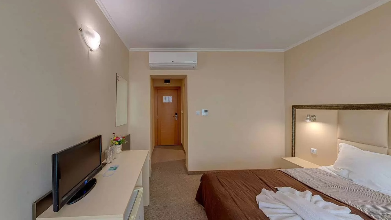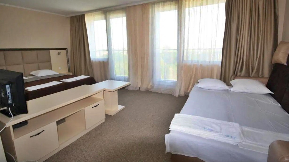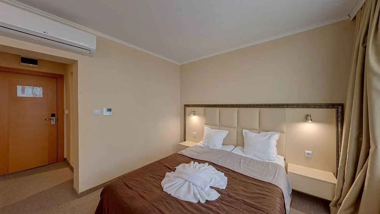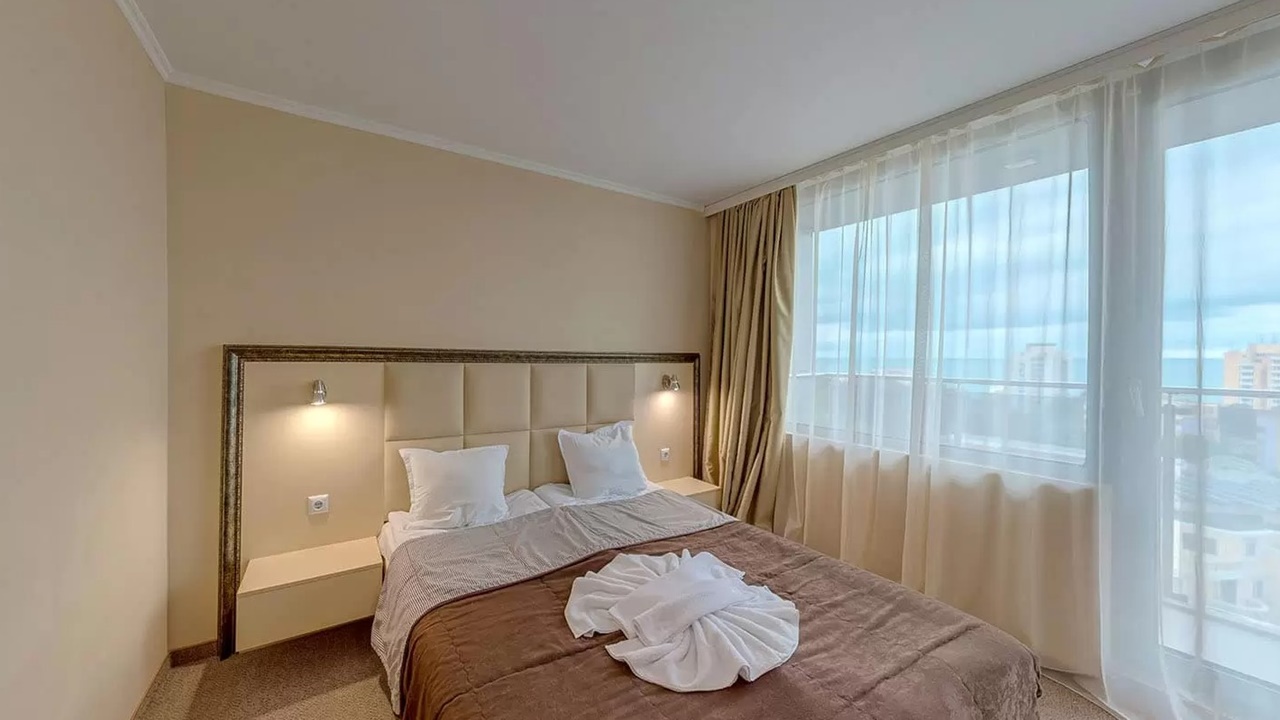 - апартамент - Апартаментите са с площ около 40 кв.м., като се състоят от две помещения, разделени с врата - едното помещение е обзаведено със спалня + дневен кът с мека мебел (разтегателен диван) и отделно обособена втора спалня