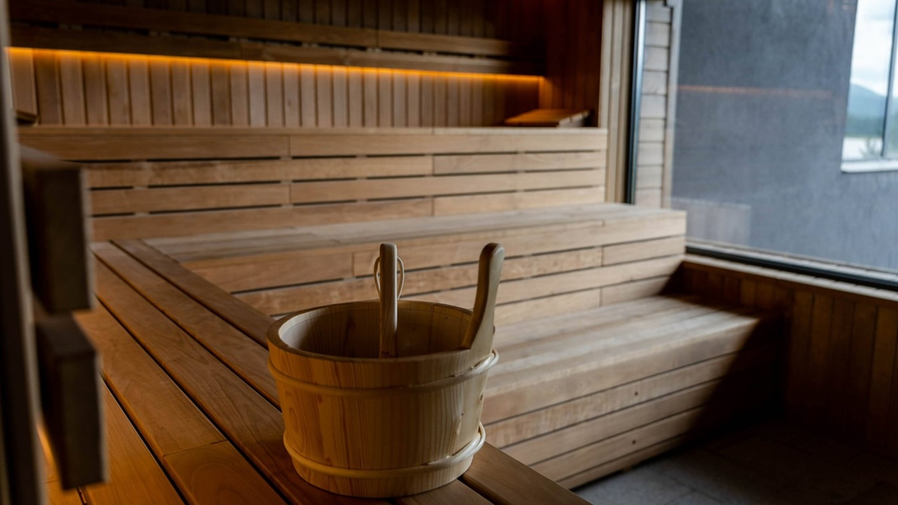 - Панорамна сауна с гледка към язовира