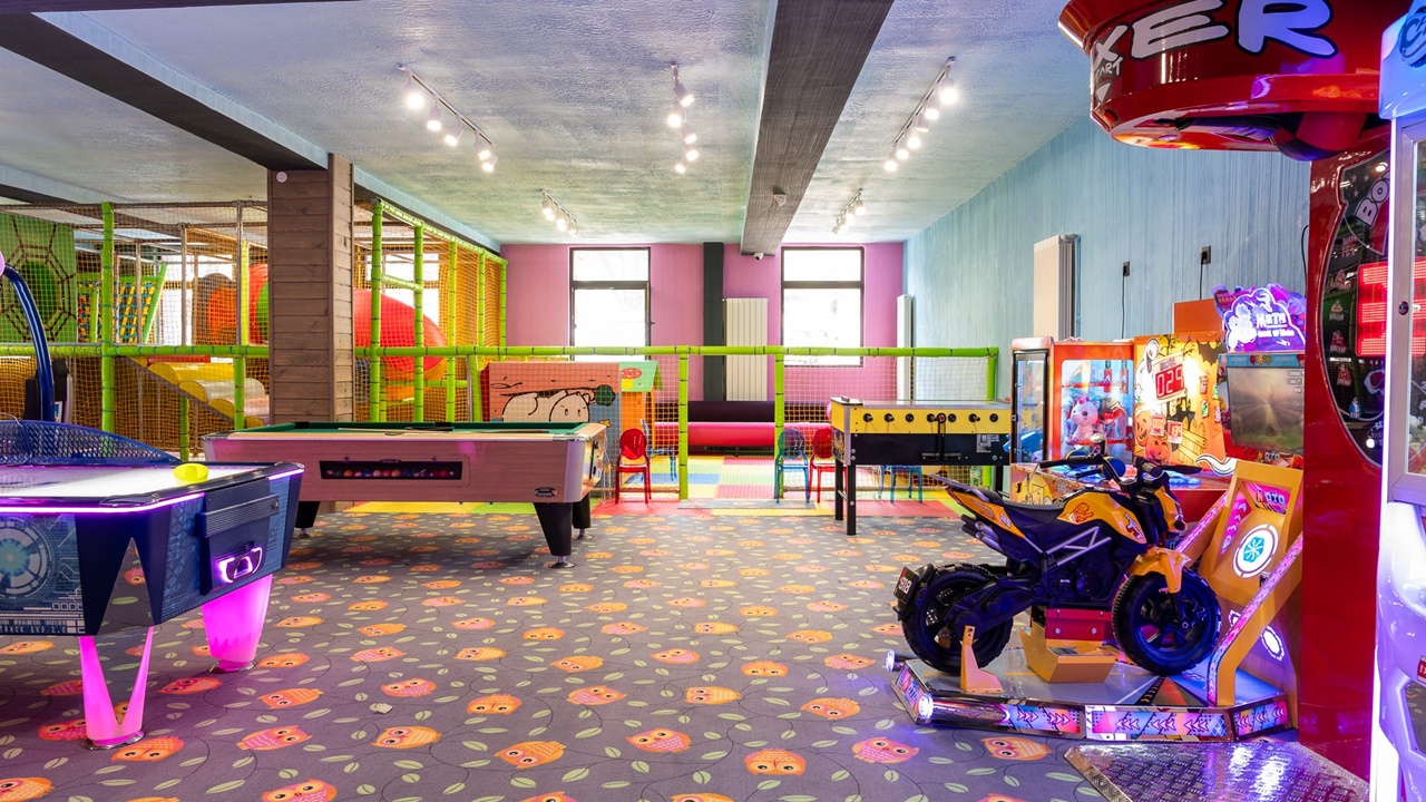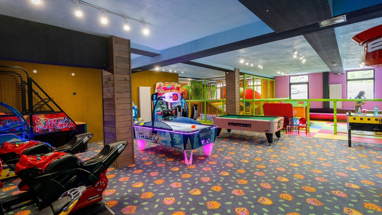 Детски кът, игрална зала с аркадни игри, външна детска площадка, детска анимация