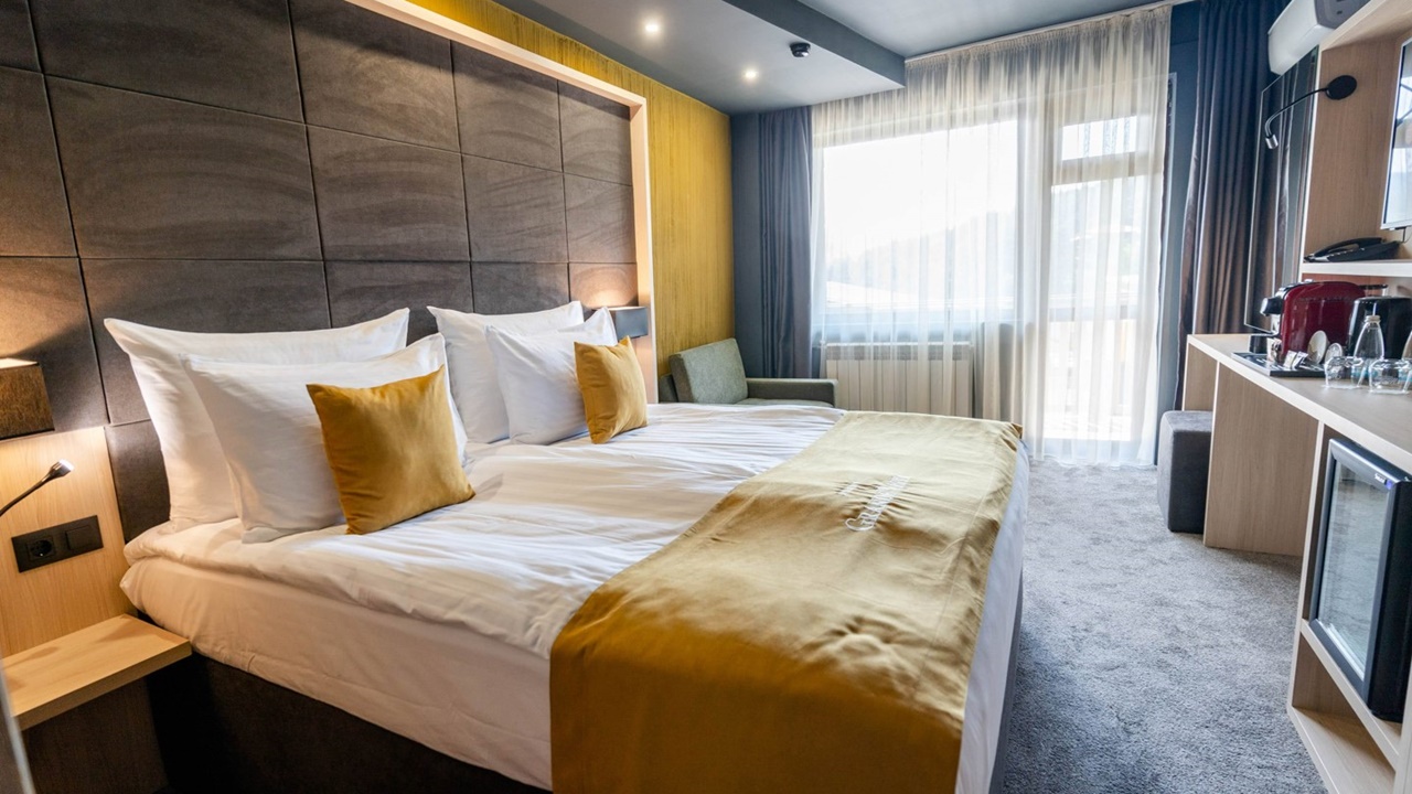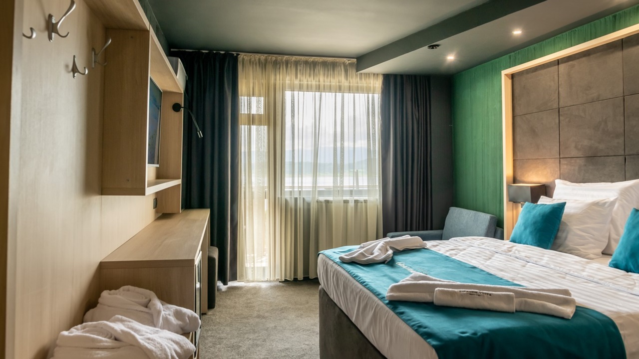 - двойна стая делукс - помещението разполага със спалня и разтегателен фотьойл и балкон, 28 кв.м.