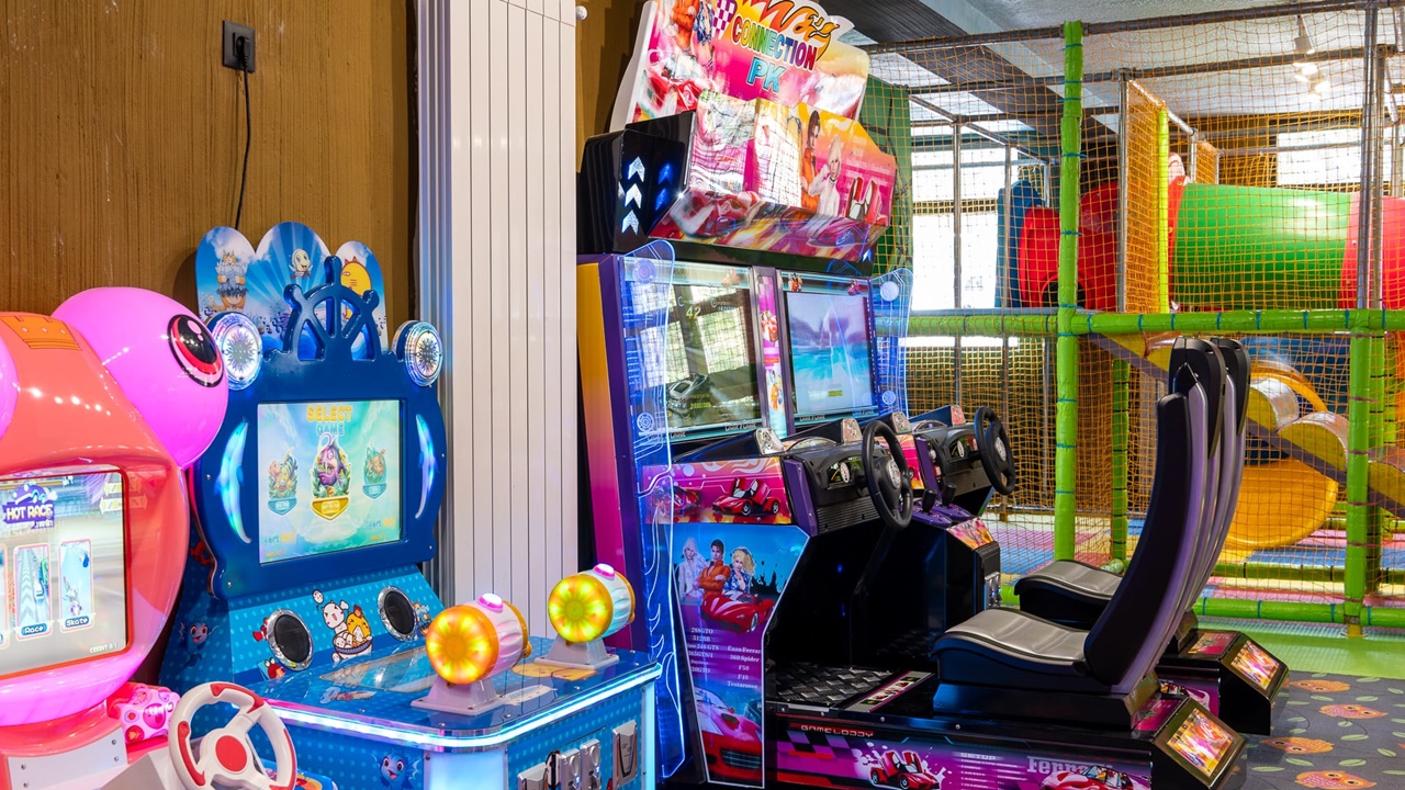 - зала за игри на закрито с аркадни игри с жетони