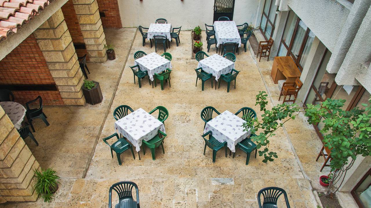 • 1. Лоби-бара на хотела - от 10:00 до 21:00 ч. - вода, кафе, чай, безалкохолни напитки от пост микс апарат (Coca-cola, Cola Light, Sprite, Fanta orange, Тonic, soda water), сок вишна, сок ябълка и сок портокал, наливен български алкохол (ракия, джин, водка, ром, мента, мастика), наливно бяло и червено вино и бира местно производство