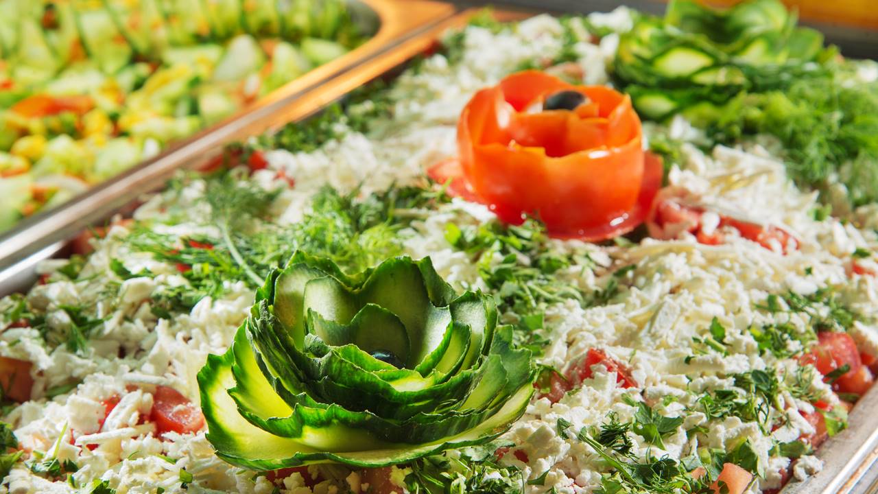 • Обяд (12:00 - 14:00) – на блок маса: салатен бар, топла и студена супа, месни и безмесни основни ястия, топли и студени гарнитури, сезонни плодове и зеленчуци, дресинги, спагети или друг вид паста, тестени десерти и кремове, напитки