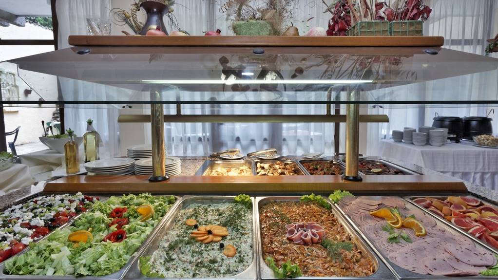 • Закуска (07:30 - 10:00) – на блок маса: млечни продукти, колбаси, яйца, тестени закуски, зърнени закуски, плодове, зеленчуци, течен шоколад, сладка и конфитюри, напитки (кафе, чай, вода, сок вишна и портокал)