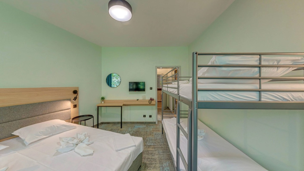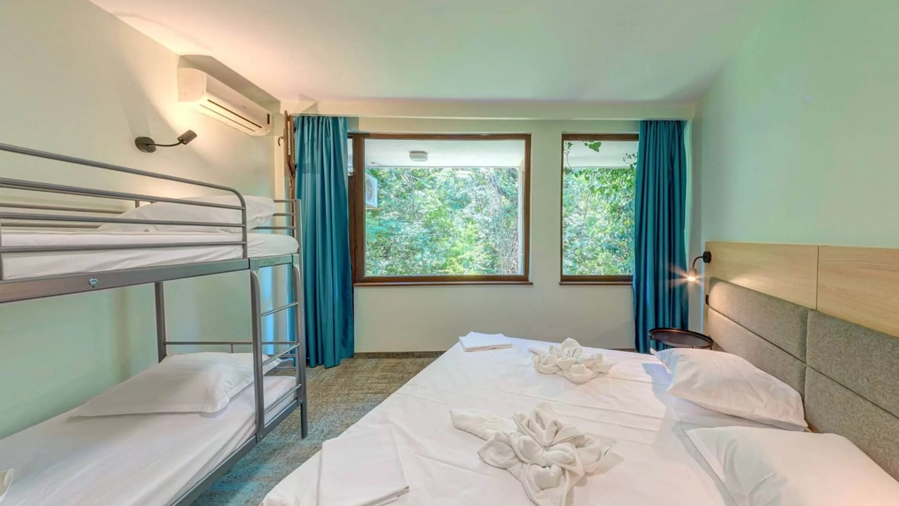 • Фамилна стая: 2 възрастни + 2 деца или 3 възрастни + 1 дете или 4 възрастни.