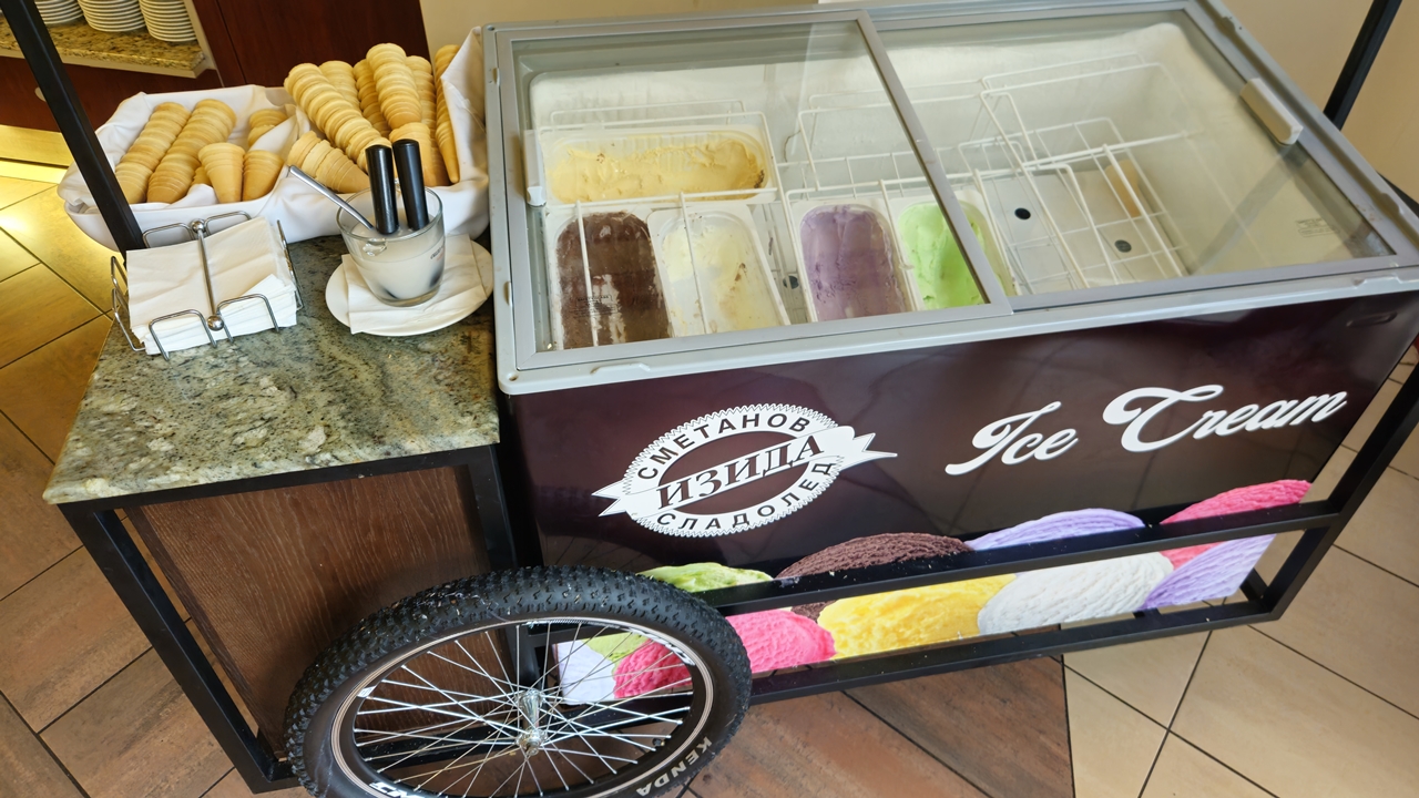- Сладолед се сервира в ресторант Demeter по време на всички хранения с изключение на закуската