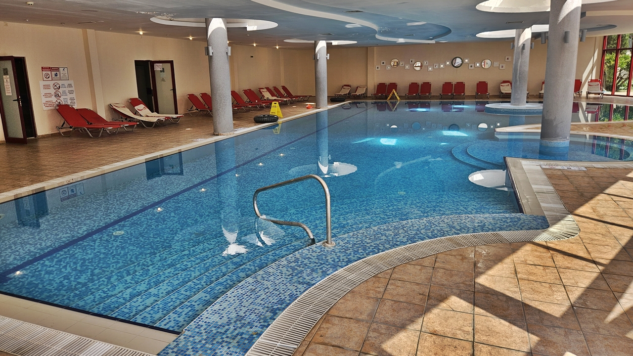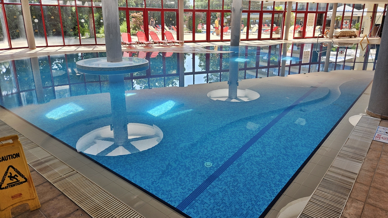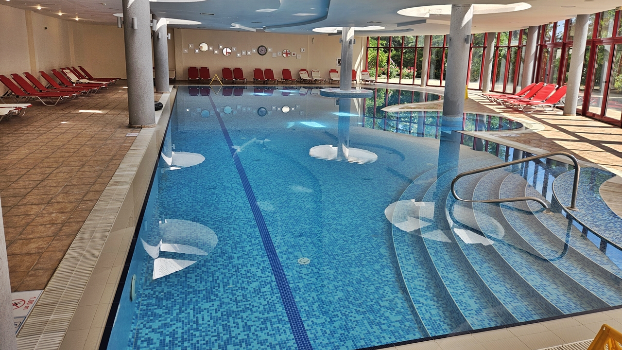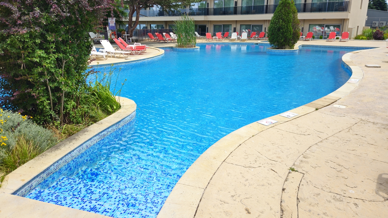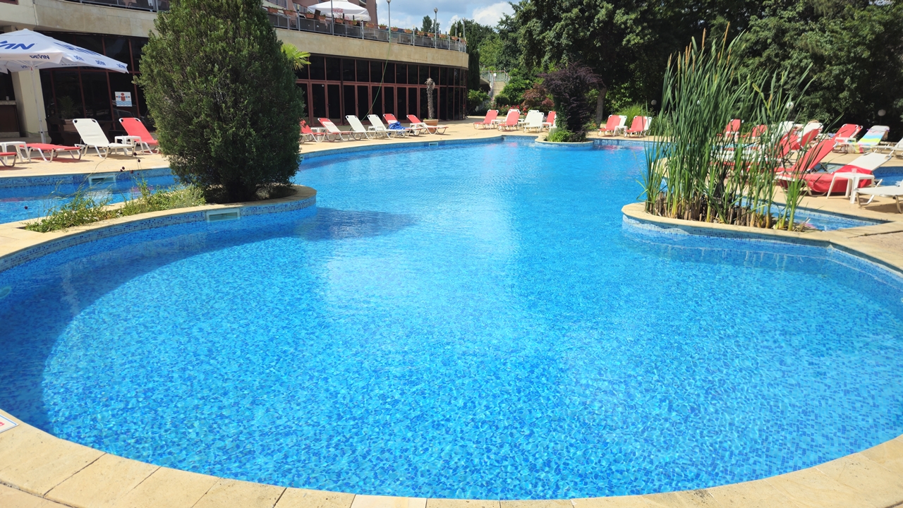 Хотелът разполага с два открити басейна, на които се предлагат водни пързалки, чадъри и шезлонги, а в допълнение има и закрит басейн, който не се отоплява през летния сезон, а само през есенно-зимния.