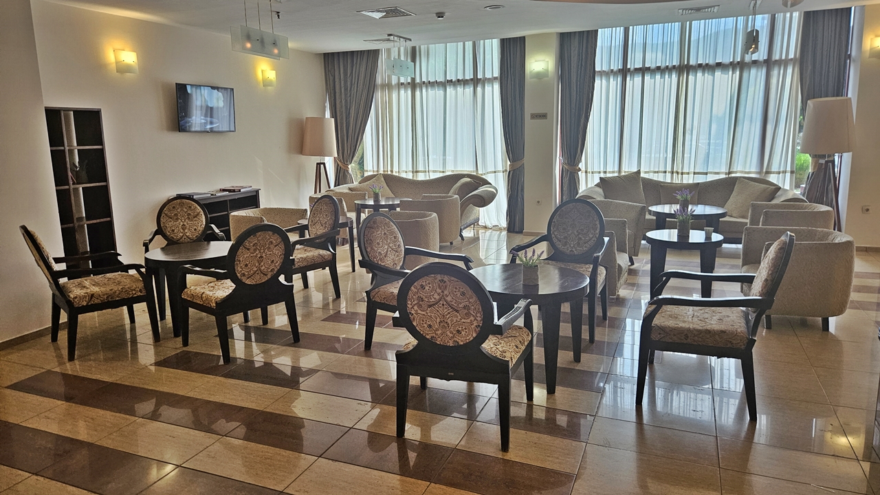 - 08:00 - 23:00 ч. в Лоби бара - топли напитки, безалкохолни напитки, местни и вносни алкохолни напитки, вино и бира - *08:00 – 23:00 ч. всичко / 08:00 – 11:00 ч. безалкохолни напитки, вино и бира