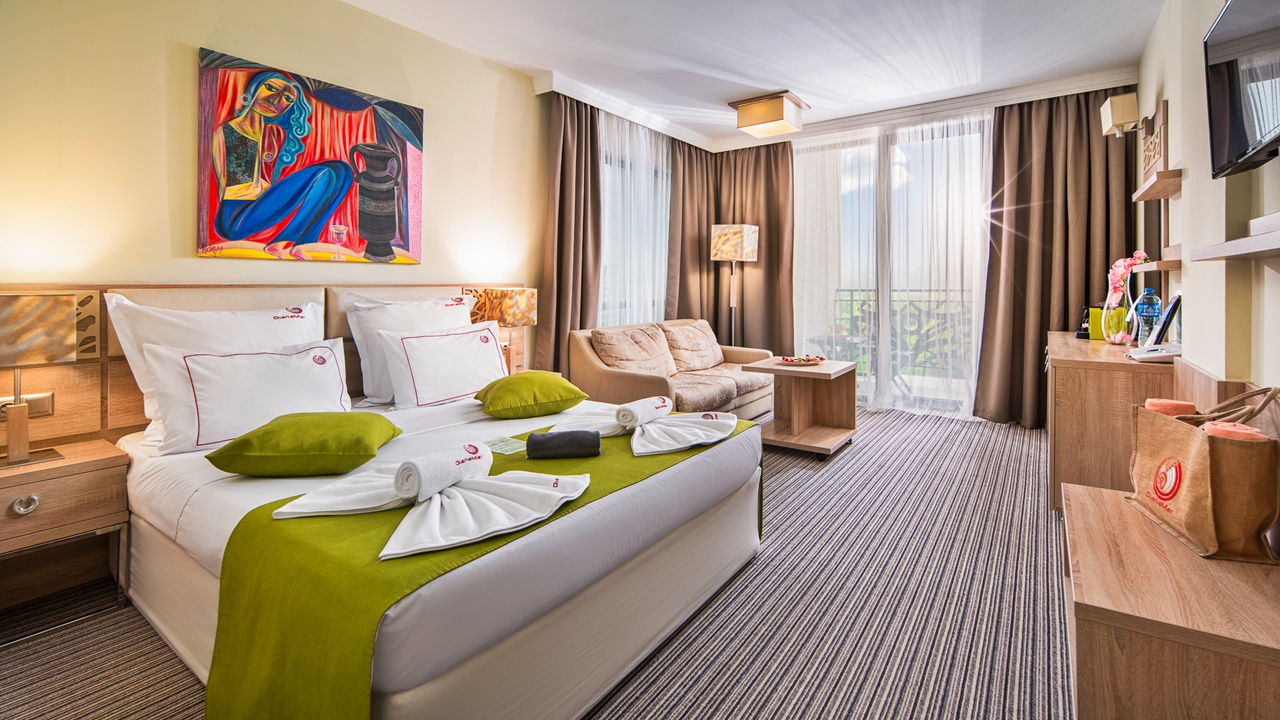- Двойна стая Делукс - 2 възрастни + 1 дете или 3 възрастни или 2 възрастни + 2 деца (хотелът разполага с 2 бр. по-големи стаи, които са с възможност за настаняване на 2 възрастни + 2 деца (спалня и разтегателен диван)
