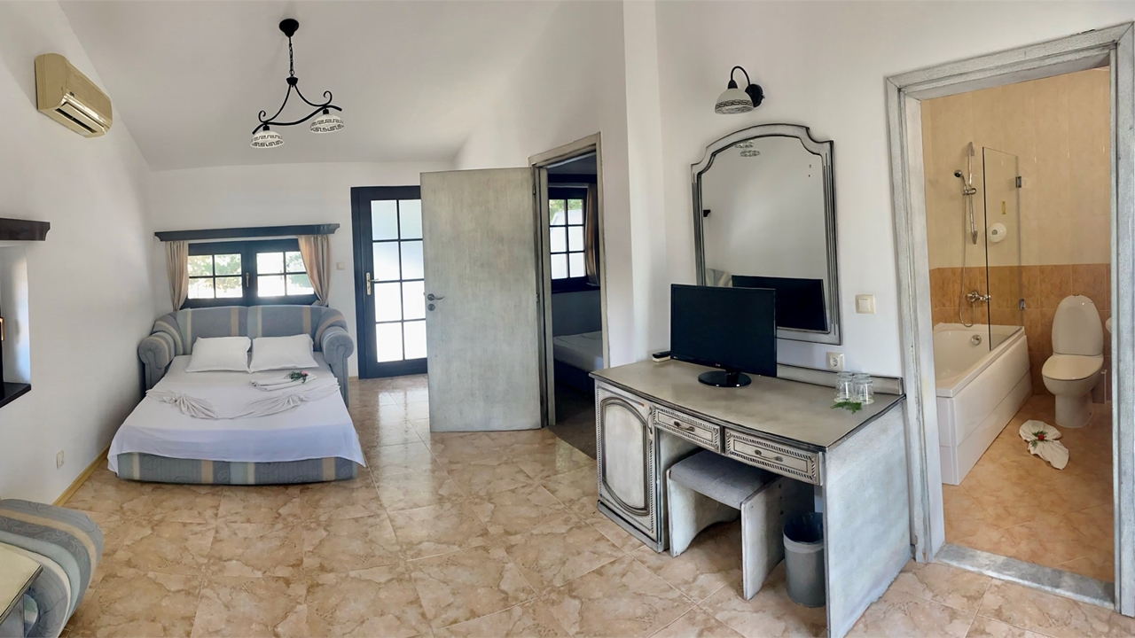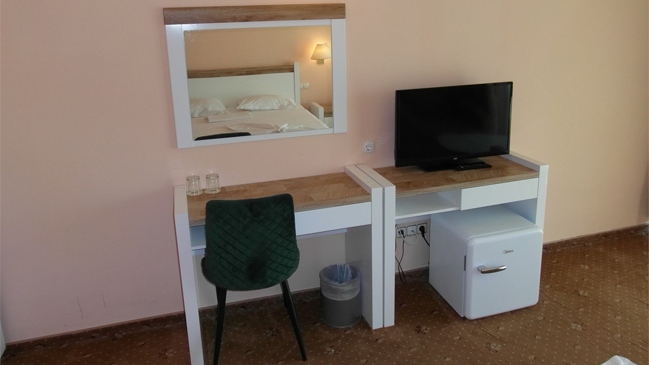 - Стандартно оборудване за всички помещения: • Централна климатизация или самостоятелен климатик • Кабелна телевизия със сателитни програми• Телефон • Мини-бар • Сейф • Баня с вана и вграден душ • Сешоар • Мокет или теракота • Балкон или тераса • Ежедневно почистване