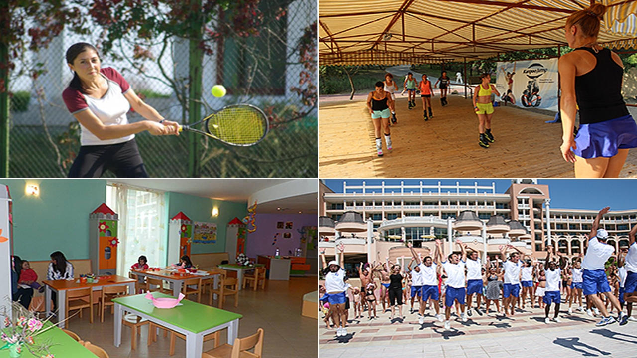 - за деца - Анимация за деца, разделени във възрастови групи от 3 до 6 години и от 7 до 11 години, Анимация за тинейджъри от 12 до 16 години, Един мини клуб, Двуседмична разнообразна детска тематична програма –Уестърн ден, Пиратски ден, Ден на земята, Маскарад, Капоейра и др., Клубен танц, Детска дискотека, Турнири, Игри в басейна, Забавни игри, Аква сплеш, Детско шоу