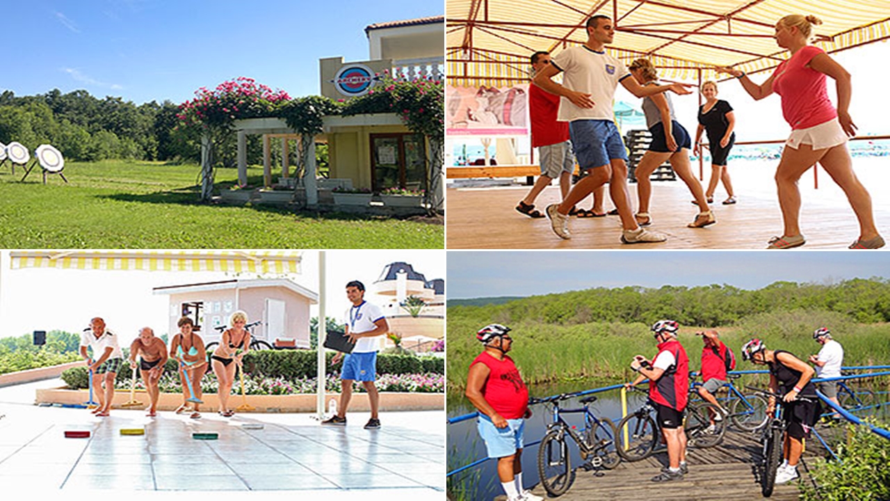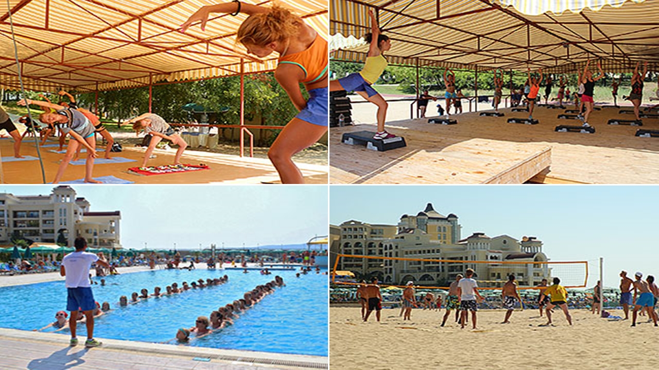 - Спорт - Стречинг, Зумба, Степ аеробик, Bodywork, Плажен волейбол (три волейболни игрища директно на плажа), Плажен футбол, Водна аеробика, Стрелба с лък (Специализирано стрелбище с различна дължина на мишените – 15, 30 и 50 метра, предлагат се всякакви лъкове, Открит фитнес, Курсове по танци (валс, танго, меренге, бачата, салса, български фолклорни и др.), Тенис на маса, Шафелборд, Боча, *Тенис на корт - десет тенис корта (3 твърди, с тартанова настилка и 7 с настилка от изкуствена трева с кварцов пясък)