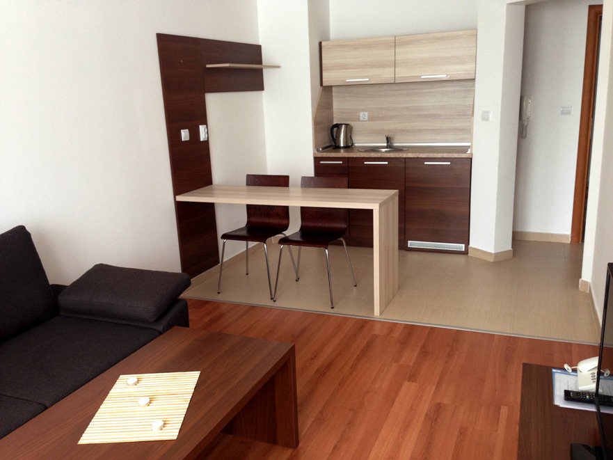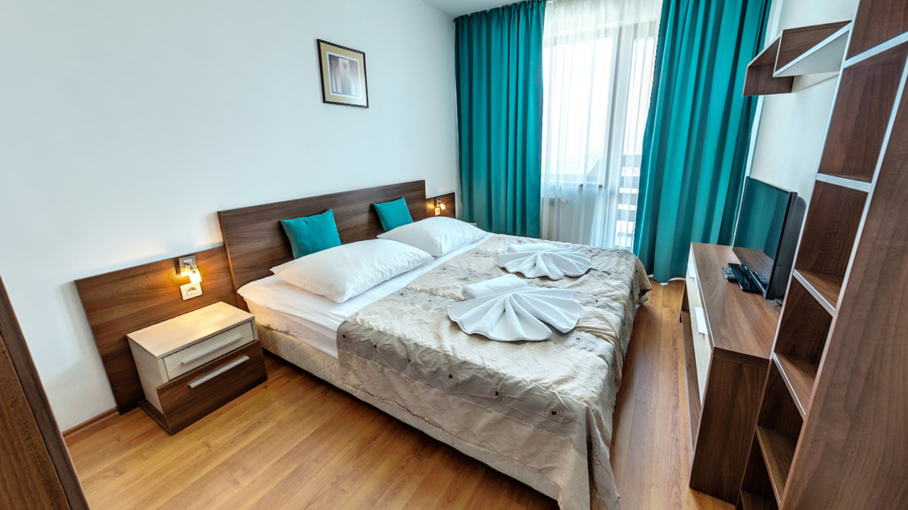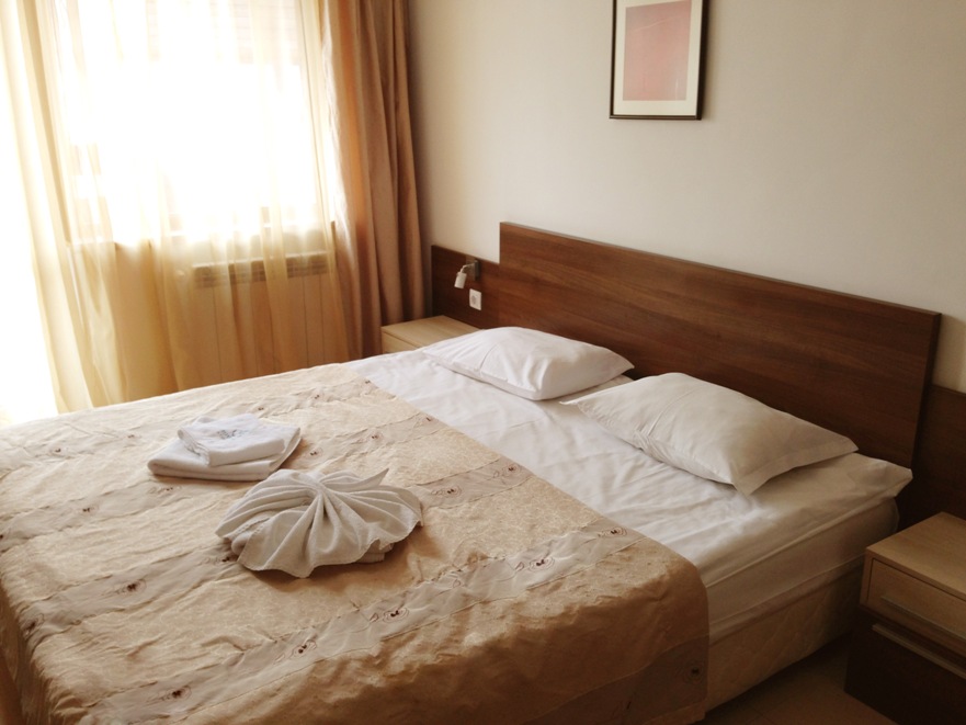 • апартамент с 1 спалня - 2 редовни + 2 допълнителни легла /2+2/. Състои се от спалня /цял матрак или разделени легла/, хол с двоен разтегателен диван, кухненски бокс, санитарен възел, балкон
