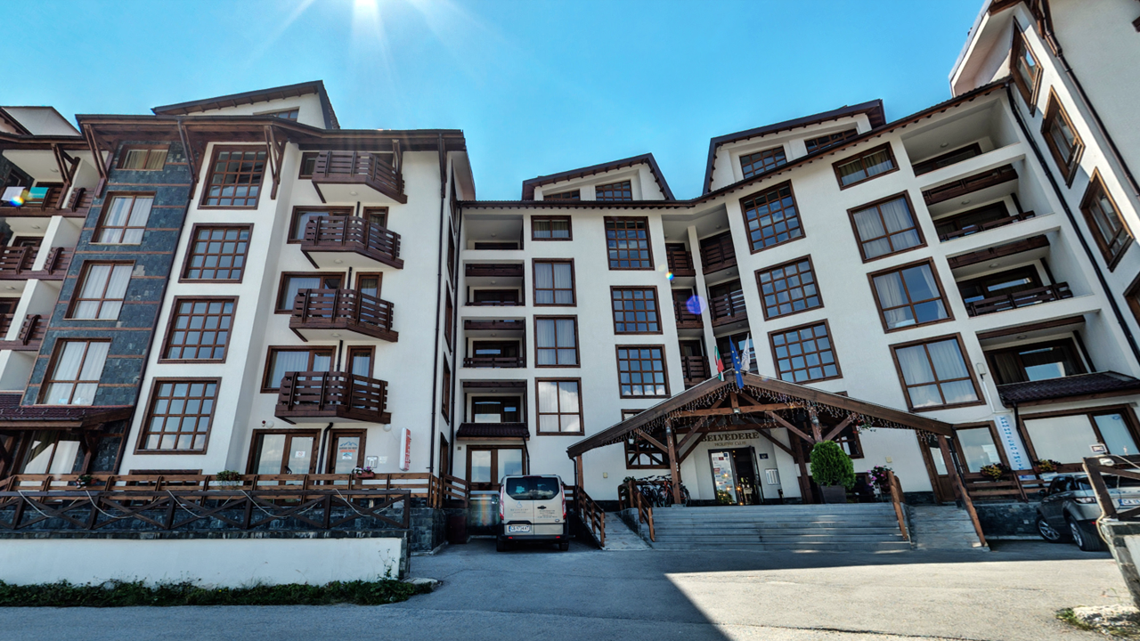 Хотел Белведере Холидей Клуб, Банско се намира на 500 метра от кабинковия лифт в Банско и представлява е луксозен 4-звезден ваканционен комплекс от затворен тип, разполагащ с редица удобства и екстри, с които да се поглезите по време на своята почивка. Комплексът е един от най-реномираните в курорта и предоставя разнообразни възможности за отдих, спорт и развлечение на своите гости. Хотелът е предпочитано място за почивка от семейства с деца, тъй като предлага удобно настаняване в апартаменти с една и две спални и много занимания на малчуганите.