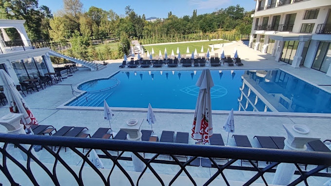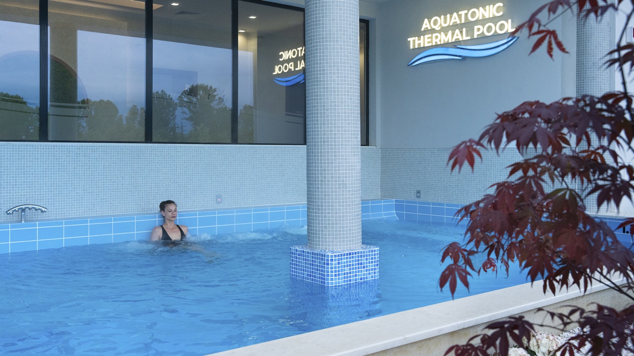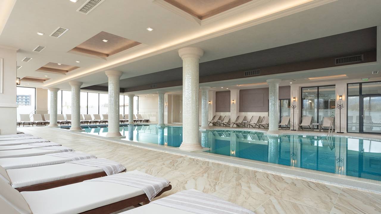 - Вътрешен и Външен Акватоничен басейн (температура на водата до 38° С, разполагащ със закрита и открита част с лежанки и дюзи за воден масаж, с директен излаз от вътрешния към външния басейн)