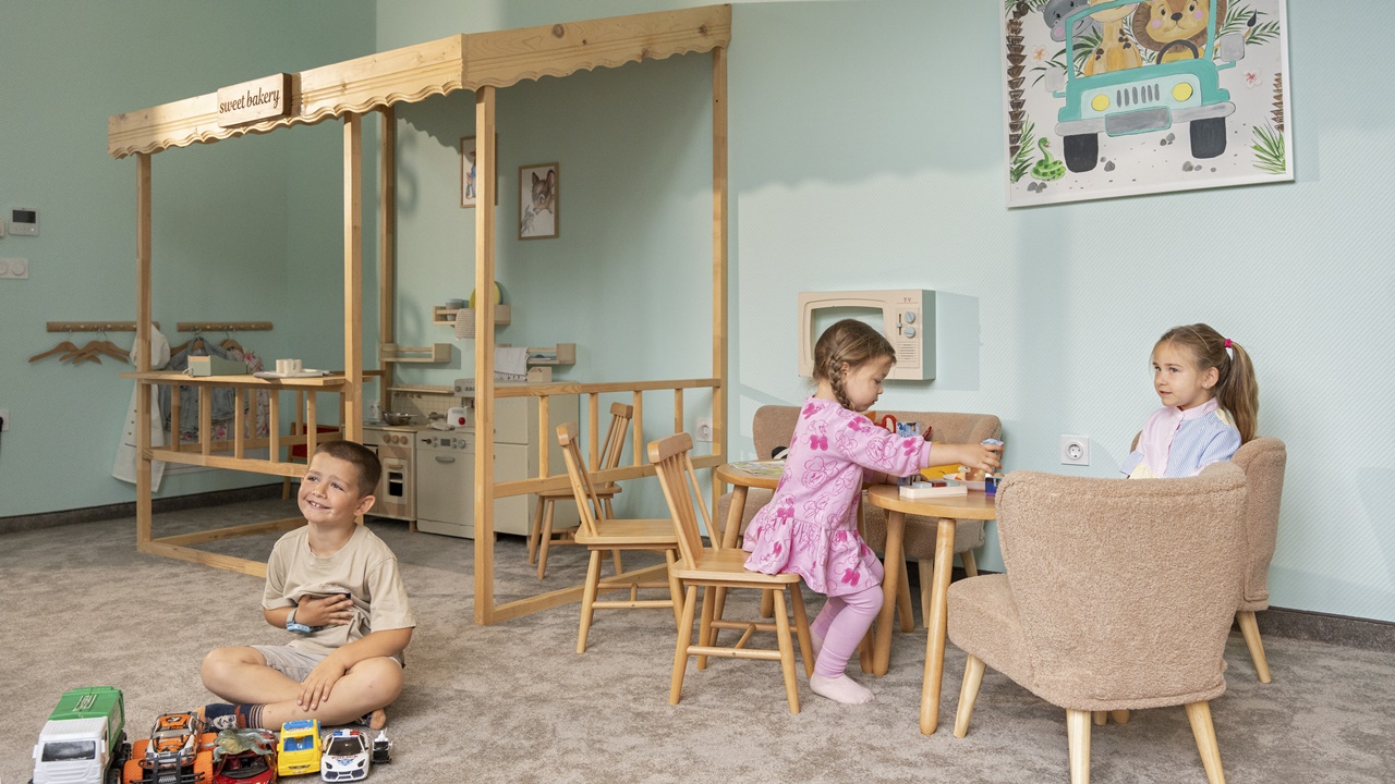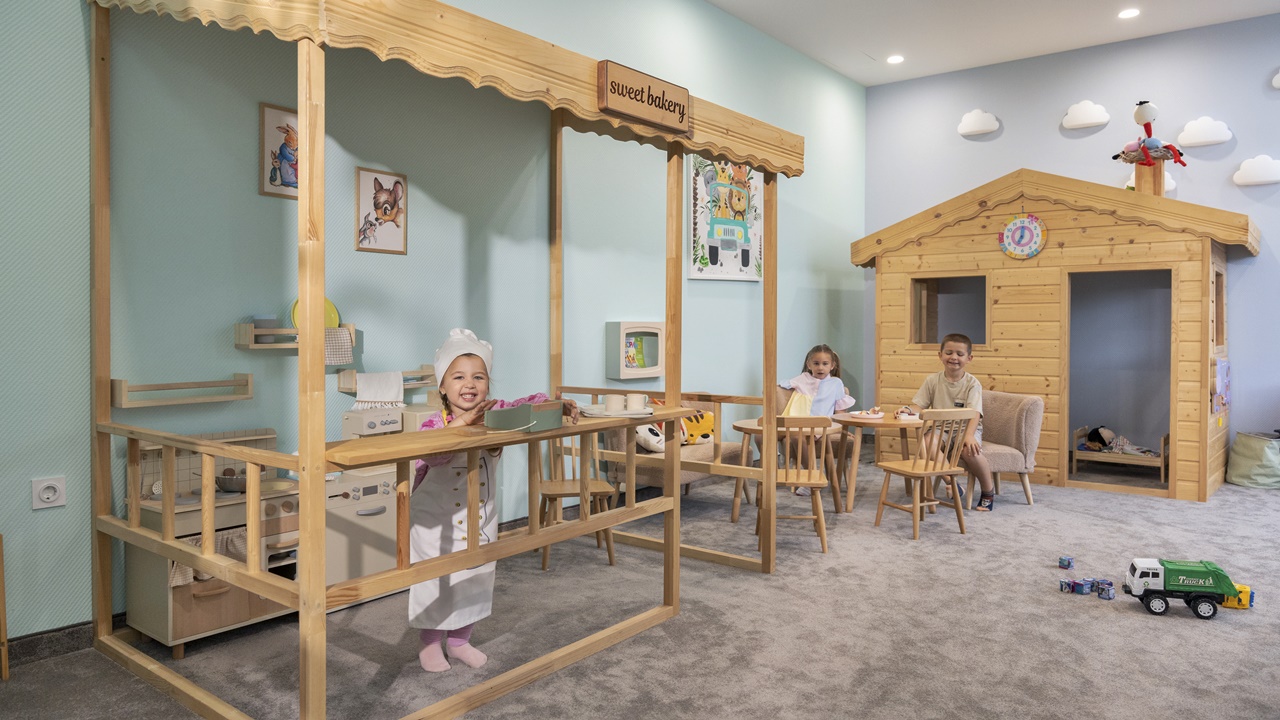 - Детски кът (вътрешни и външни зони)