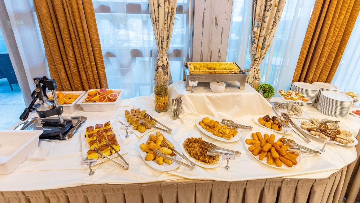 - Закуската е на блок маса или сет меню (по преценка на хотела), вечерята е на 3 степенно сет меню без включени напитки