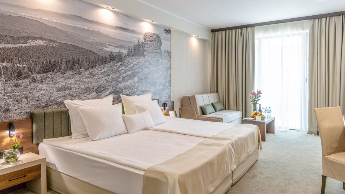 - двойна стая делукс с или без балкон - 2 възрастни и 2 деца до 11.99 год. или 3 възрастни. Делукс стаите разполагат със спалня и разтегателен диван (персон и половина)