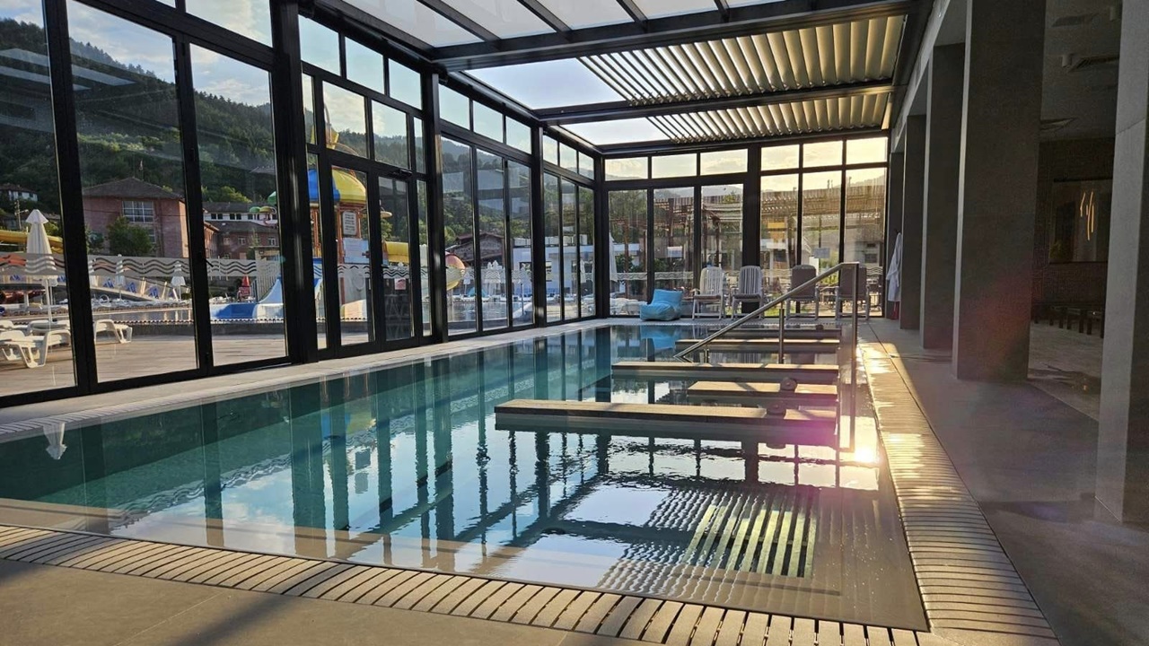 Вътрешен минерален басейн с гледка към планината