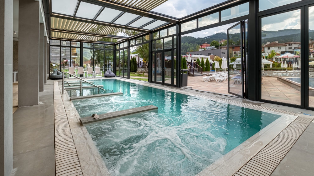 - вътрешен минерален басейн с гледка към планината и детска секция