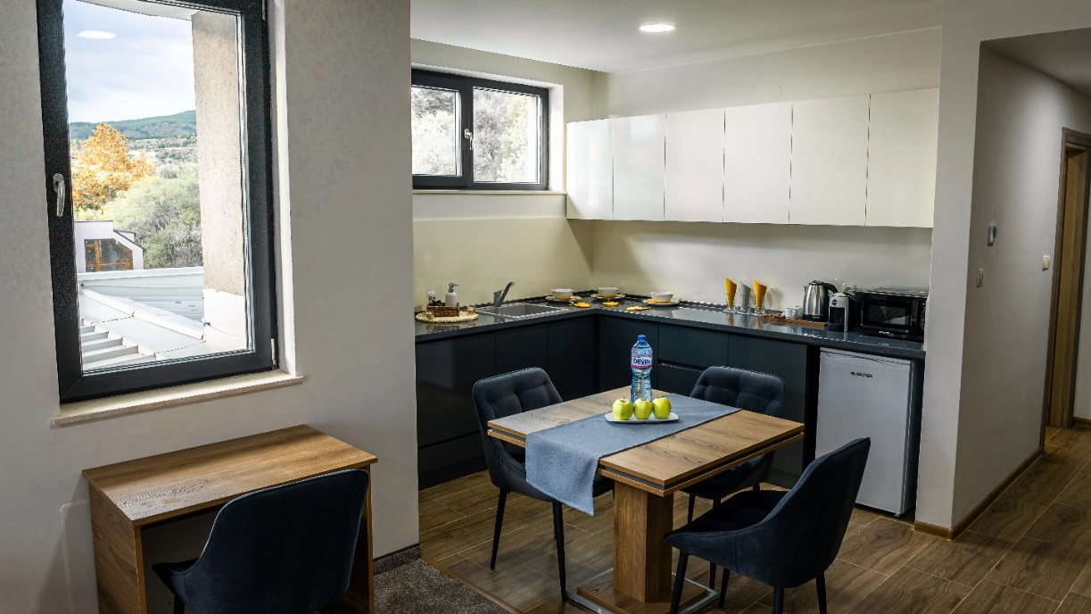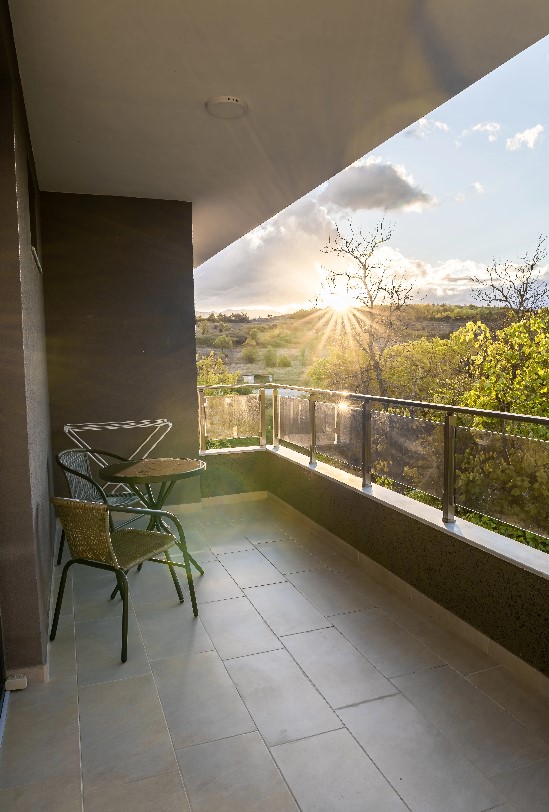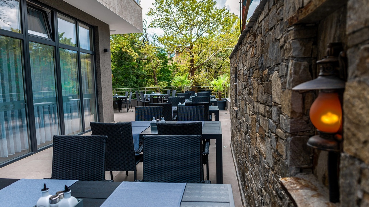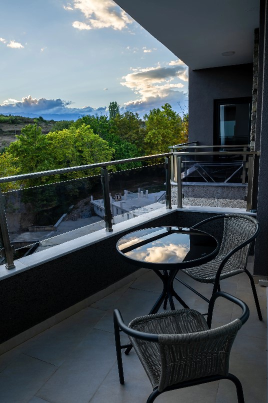 • Всички помещения имат напълно оборудвана самостоятелна тераса с гледка