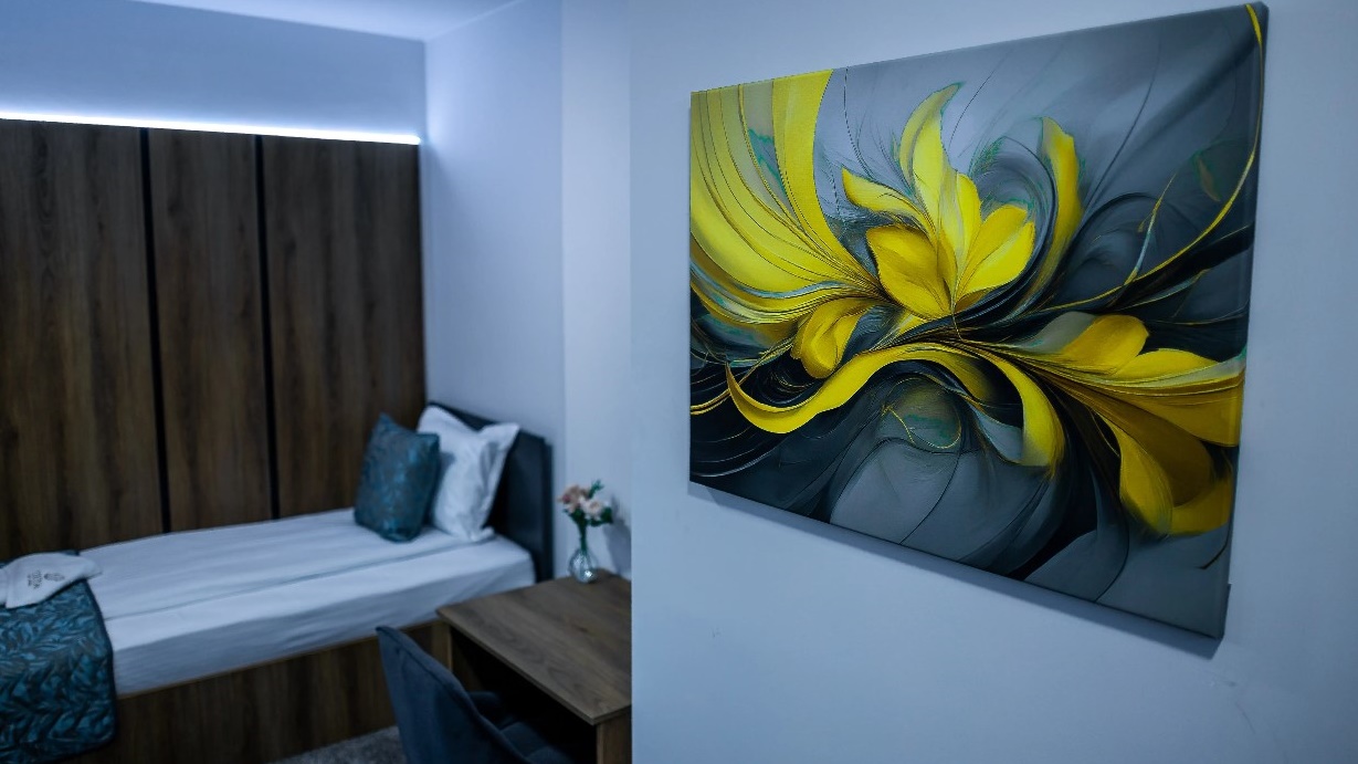 • Хотелът разполага с 30 помещения, от които 25 двойни Делукс стаи, 3 двустайни апартамента и 2 Панорамни апартамента на последен етаж