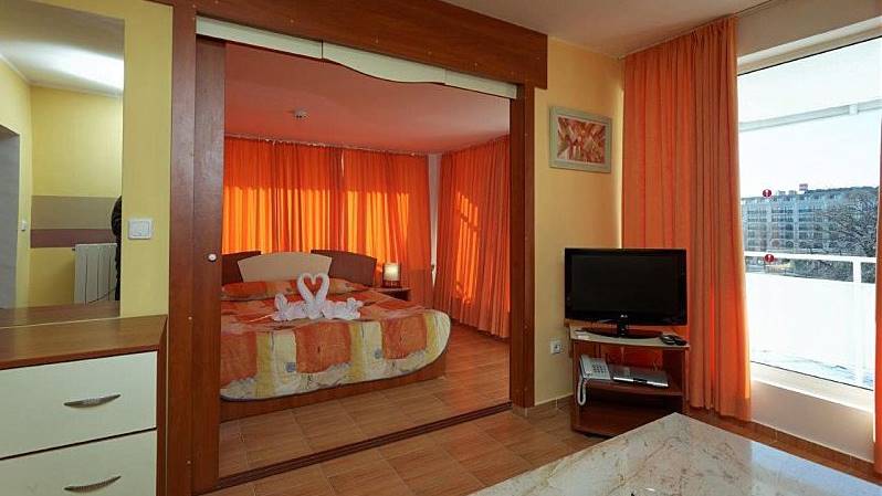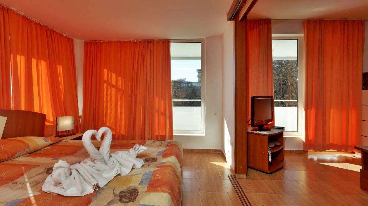 - двойна стая - 2 възрастни + 1 дете или 3 възрастни (2 на редовно и 1 на допълнително легло). Всяка двойна стая (около 22кв.м) разполага със спалня или две отделни легла, собствен санитарен възел с душ, индивидуален климатик, кабелна телевизия, хладилник, телевизор и балкон. Има възможност за поставяне на допълнително походно легло за трети възрастен или разтегателен фотьойл за дете до 12г.