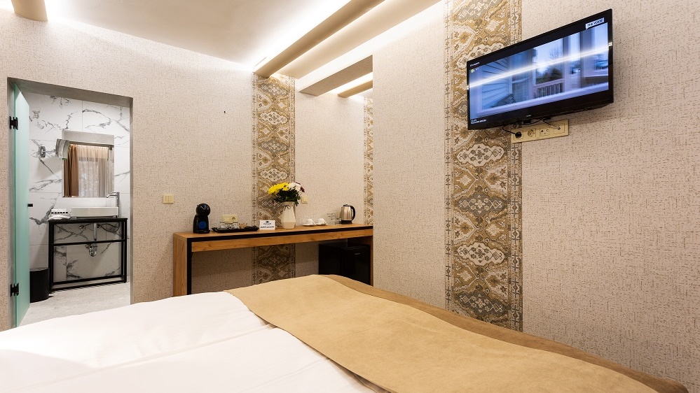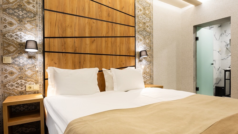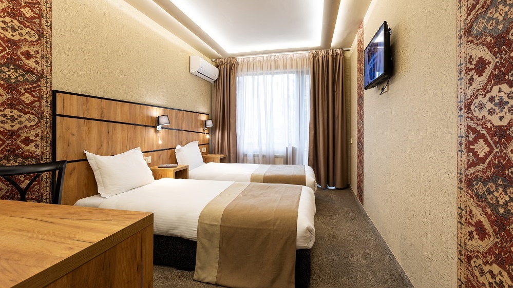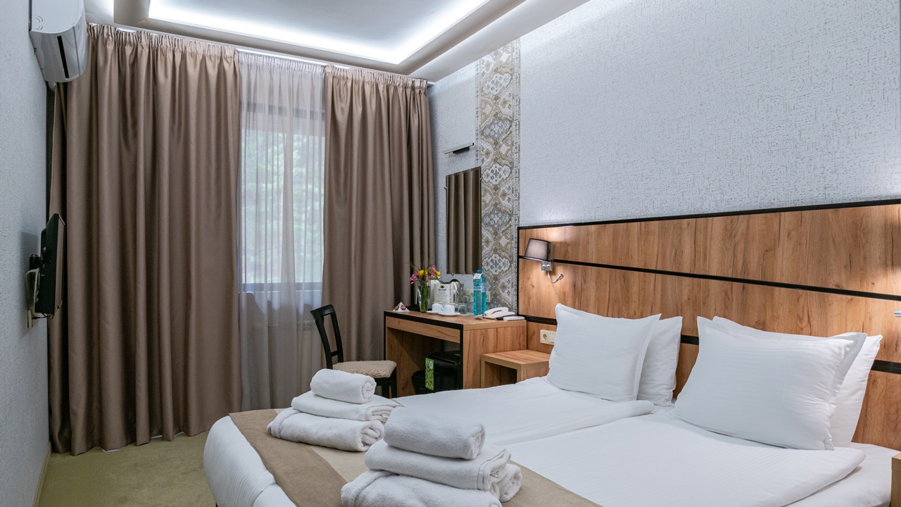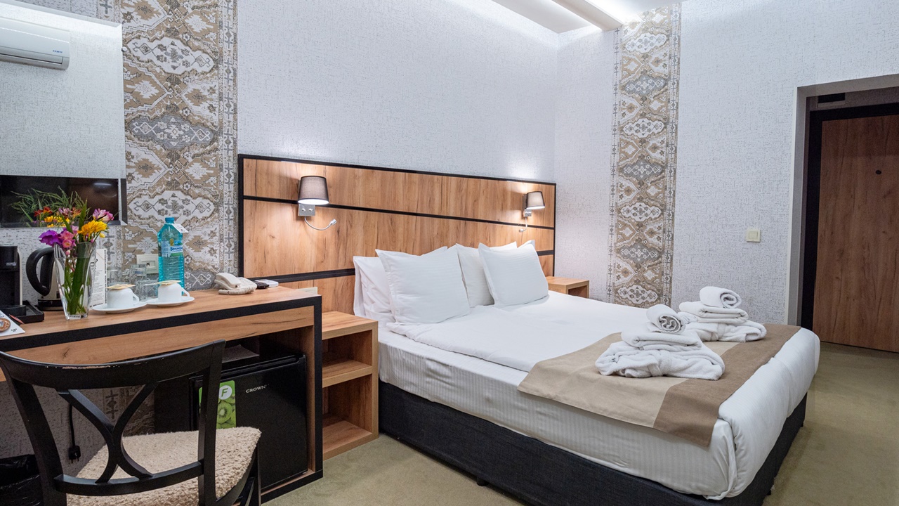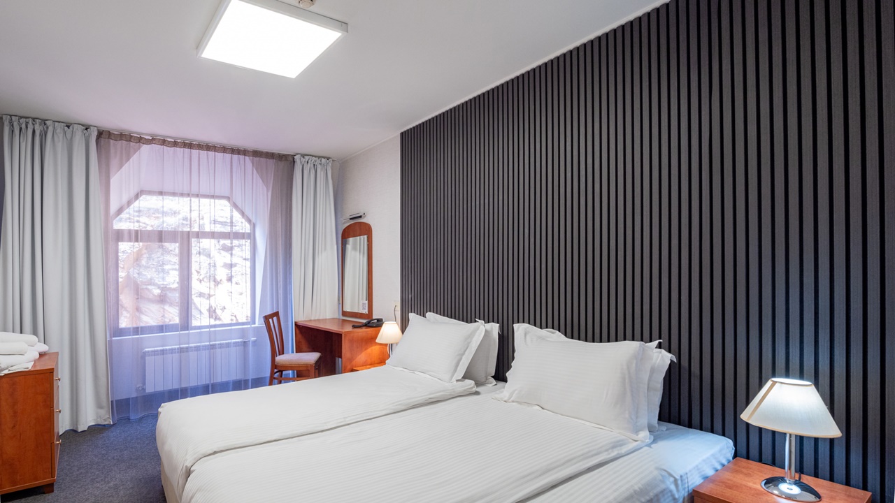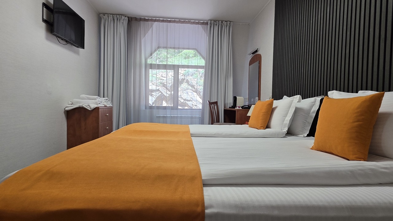 • двойна стая - Двойната стая без балкон е удобна и тиха. Леглото е спалня. Подходяща е за двама души. Предлага се изглед към града или зелена борова гора. Напълно реновирана.