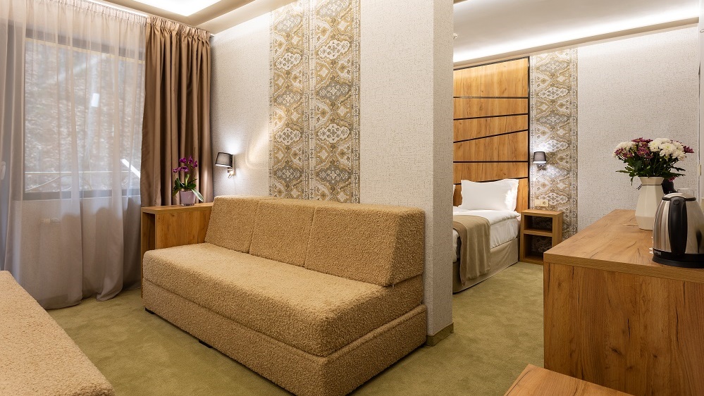 Доплаща 80 лв./40.90 € на вечер, като се настанява на разтегателен диван на база пакета