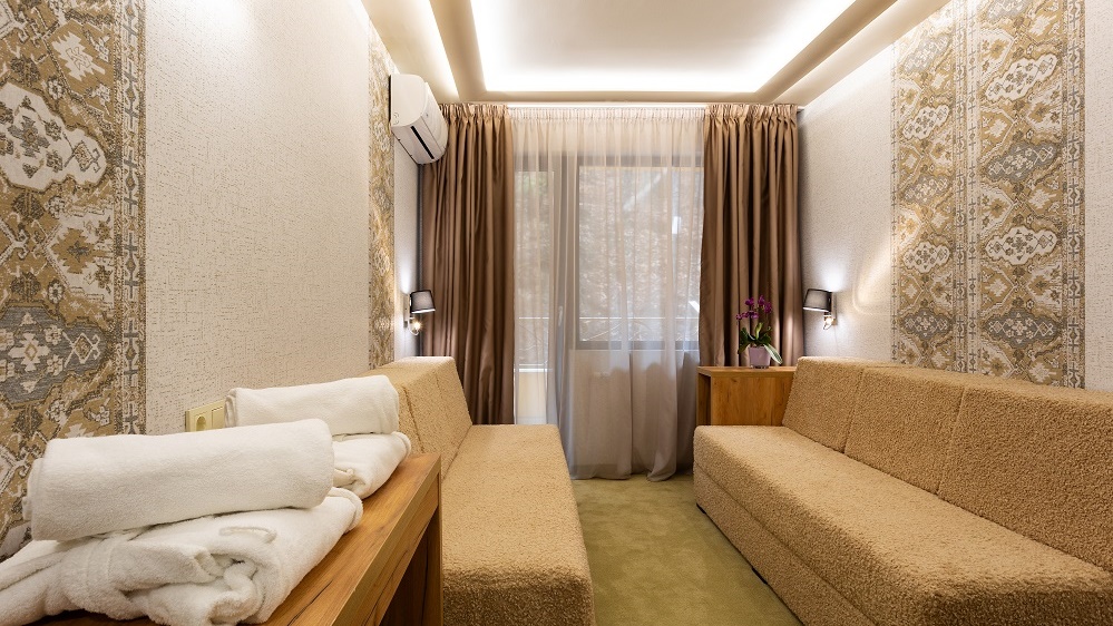 В СПА центъра ще откриете пълноценна грижа за здравето и доброто ви настроение – парна баня, финландска сауна, тепидариум, джакузи, солна стая, масажи и балнео процедури с прочутата минерална вода на Велинград.