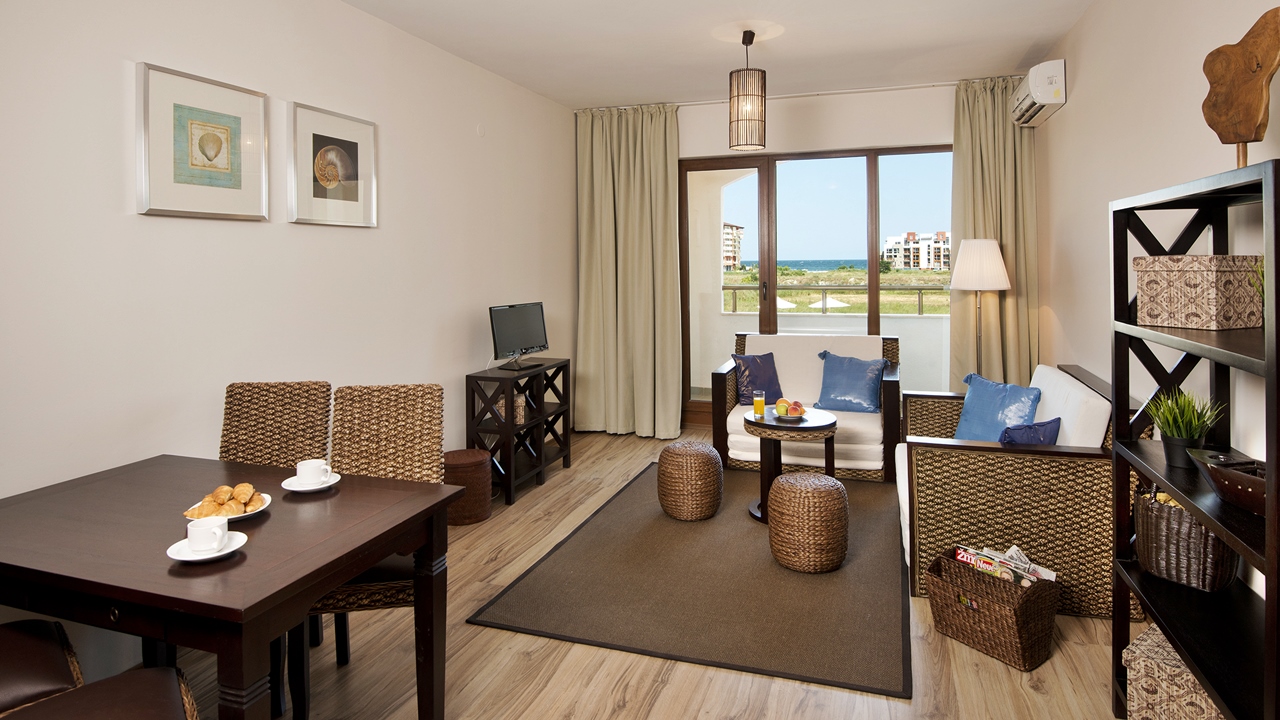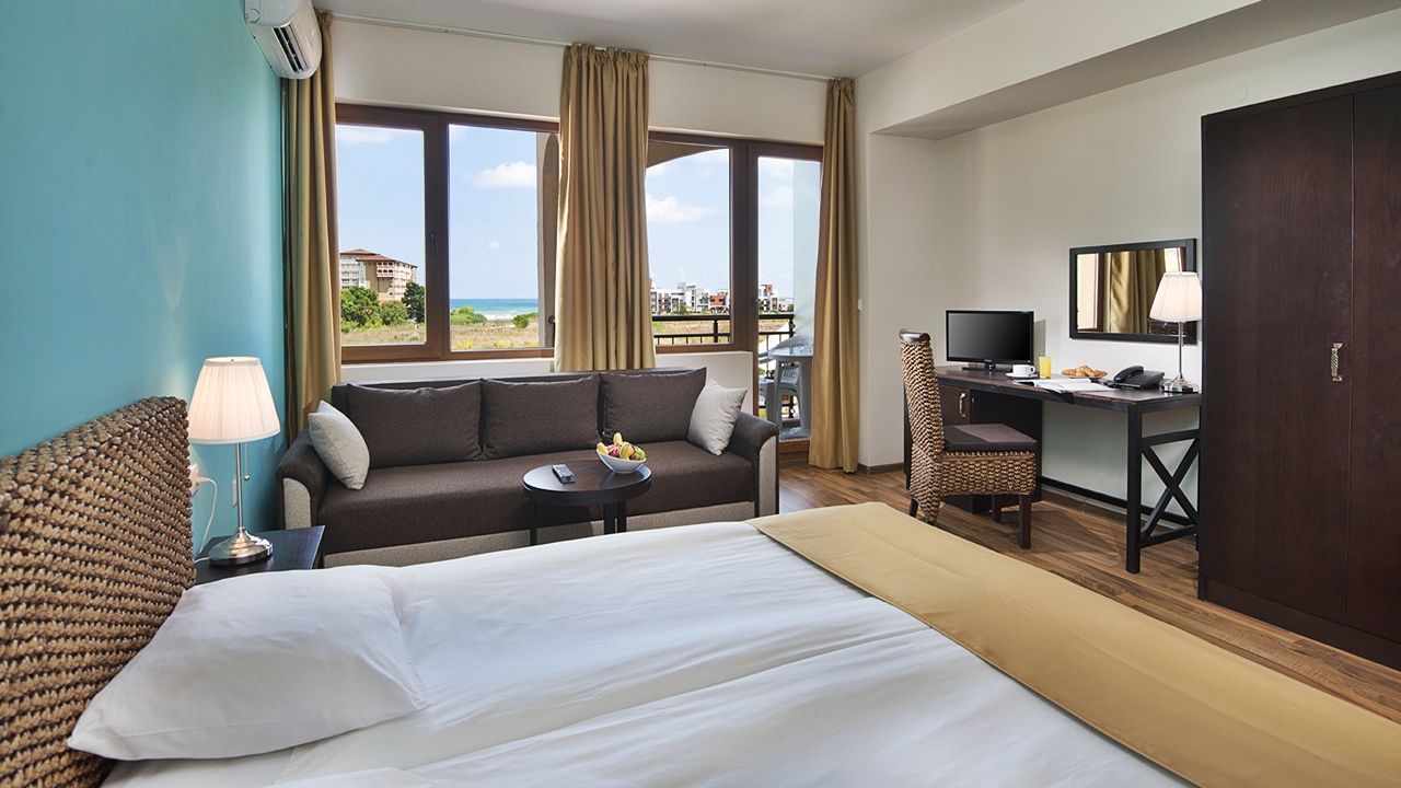 • апартамент с 2 спални парк/море - разполагат с 2 спални (2 отделни и 1 спалня), разтедателен диван, дневна с кухненски бокс и трапезария, баня с вана или душ и тоалетна, допълнителна тоалетна, климатик, мини хладилник, телефон, телевизор с плосък екран и сателитни канали и балкон.