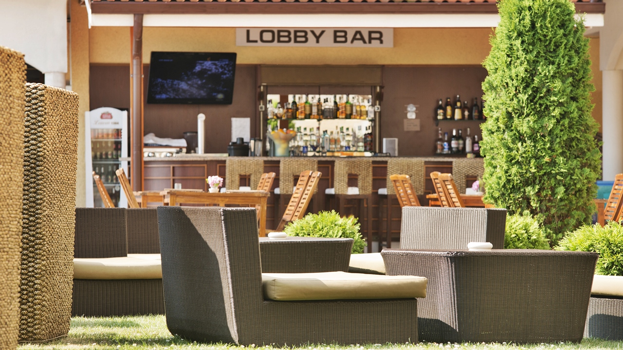 • Лоби / Пул бар в Сграда 4 (09:00 - 23:00 ч.) - наливни безалкохолни напитки, наливно бяло и червено вино (чаша), наливна бира, местен алкохол, вода в чаша, алкохолни и безалкохолни коктейли (ограничен избор).