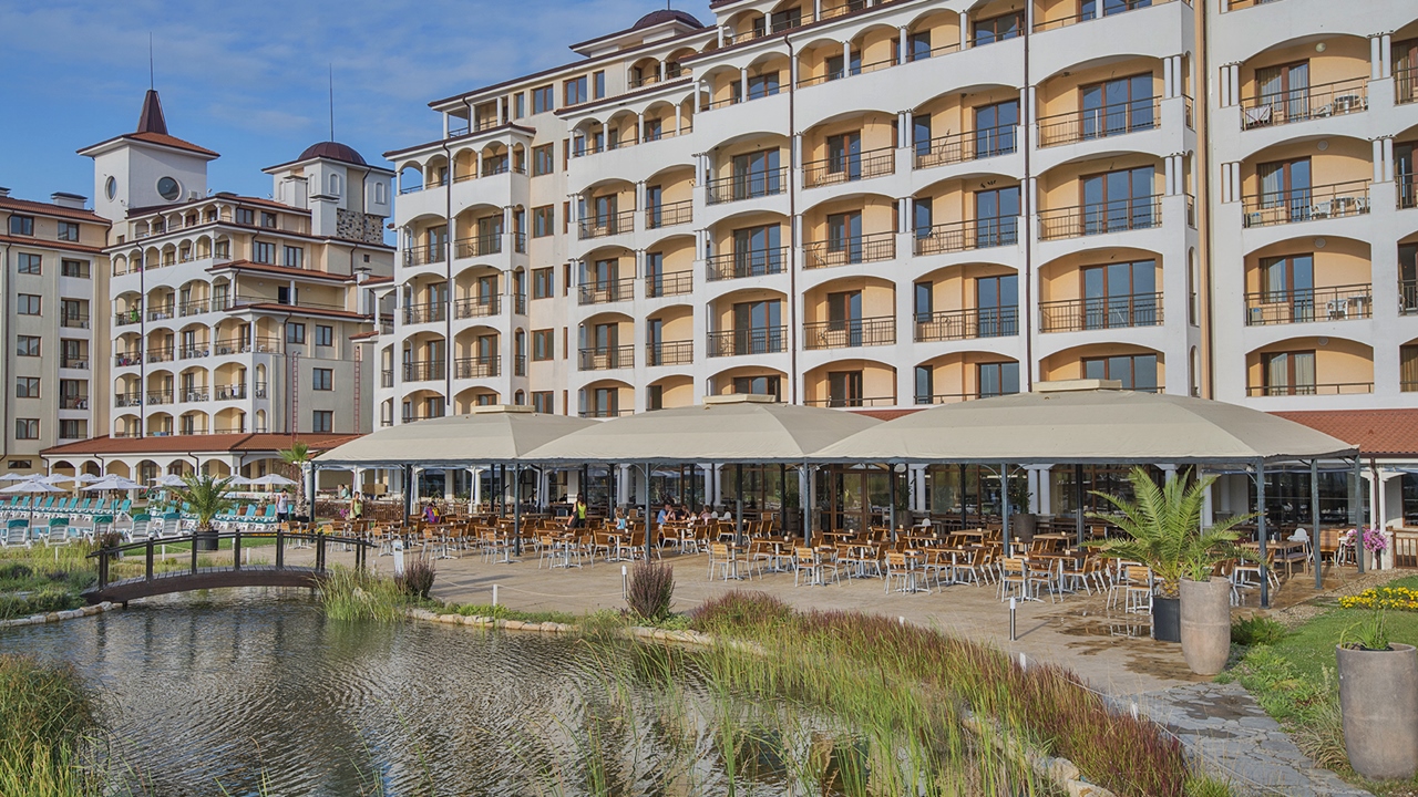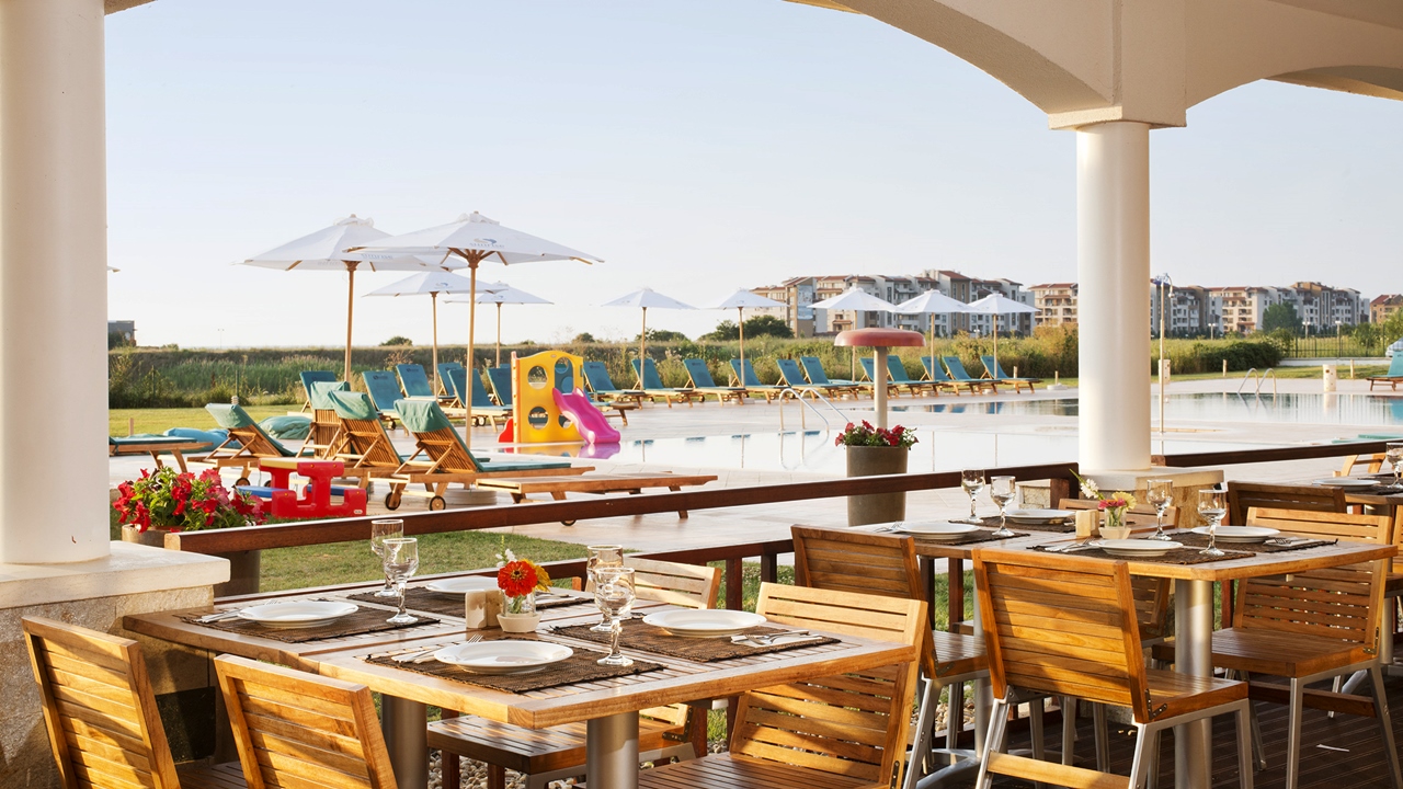 • А-ла-карт алтернативна вечеря (18:00 - 21:00 ч.) в А-ла-карт ресторант в Сграда 4 - вечеря по селектирано меню с а-ла-карт обслужване, напитки от лоби / пул бара. Важи САМО в периода от 01.06 до 31.08. Тази вечеря се полага веднъж при престой от минимум 7 нощувки. Местата са ограничени и е необходима предварителна резервация. Възможна е отмяна поради лошо време.