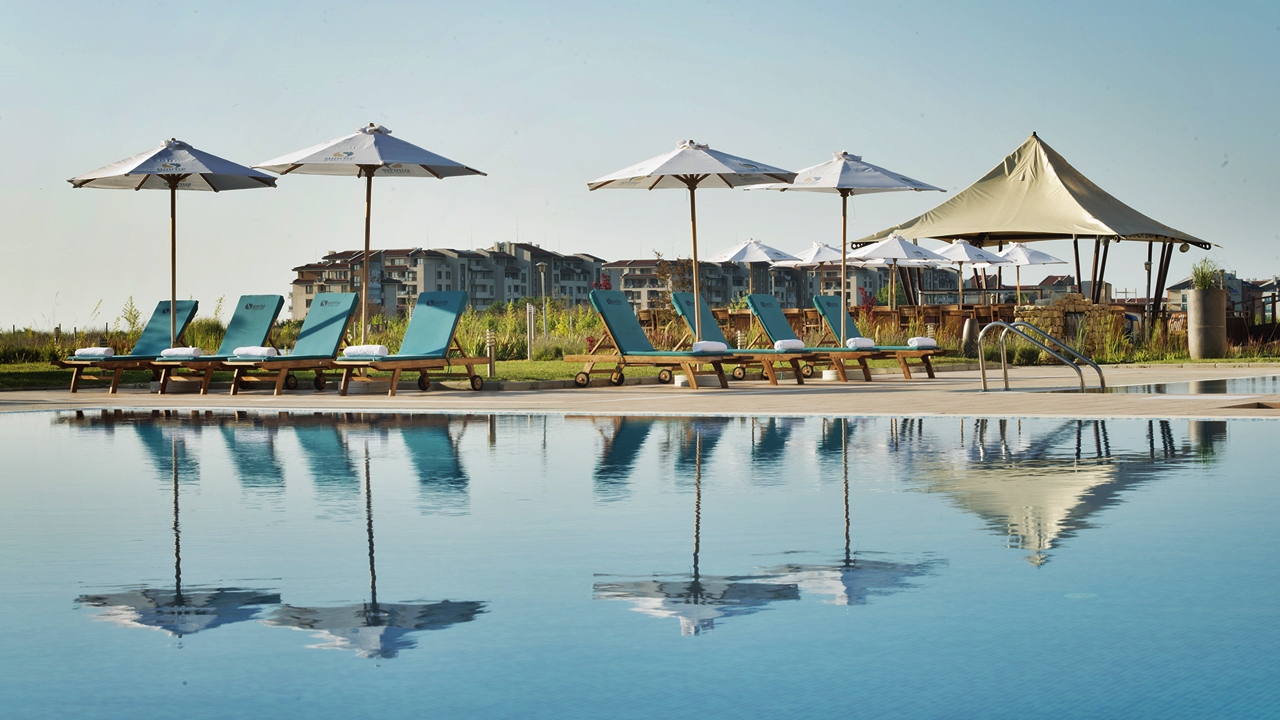 • Чадър и шезлонг край басейна (при наличие на свободни)