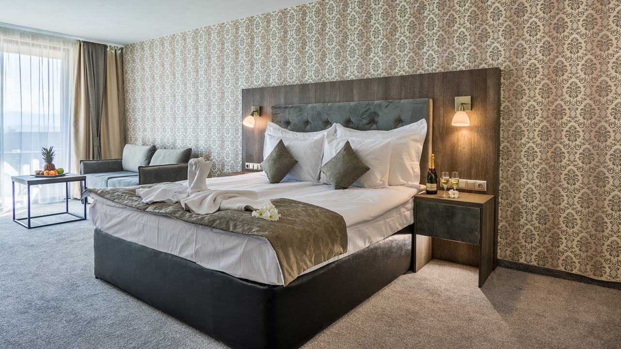 - двойна стая делукс плюс - 7 двойни стаи Делукс плюс, разполагат с двойно легло / спалня и разтегателен диван. Пет от стаите са със спалня и две единични легла, две са със спалня и разтегателен диван