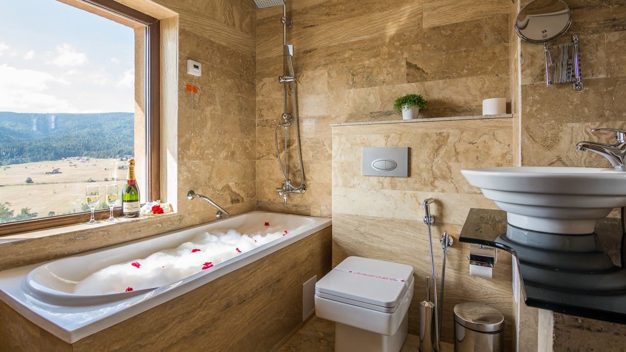 - двойна стая делукс - 19 двойни стаи Делукс, които разполагат със спалня / двойно легло и разтегателен фотьойл, 3 от стаите са с вана и гледка към природата и язовира, а останалите са с вана или душ