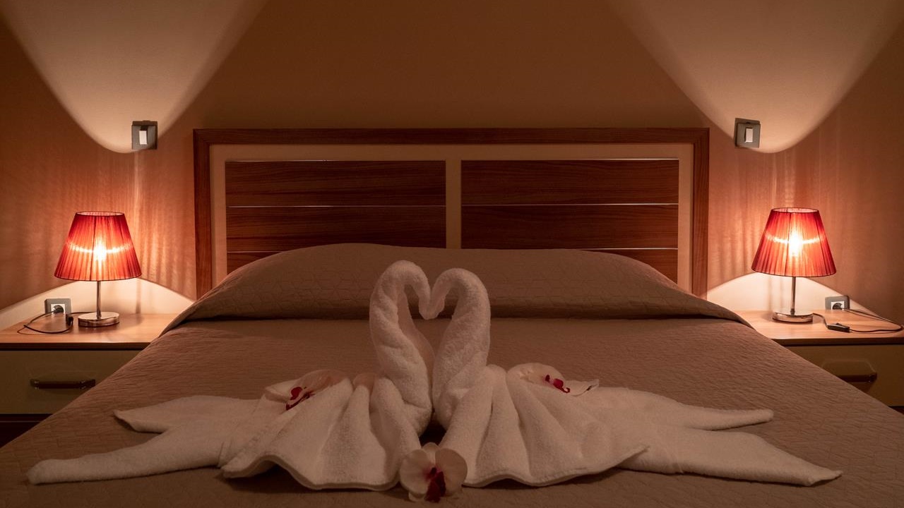 - При настаняване на 1 възрастен или 1 възрастен с 1 дете на редовно легло се закупуват по 2 ваучера на вечер