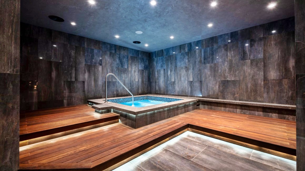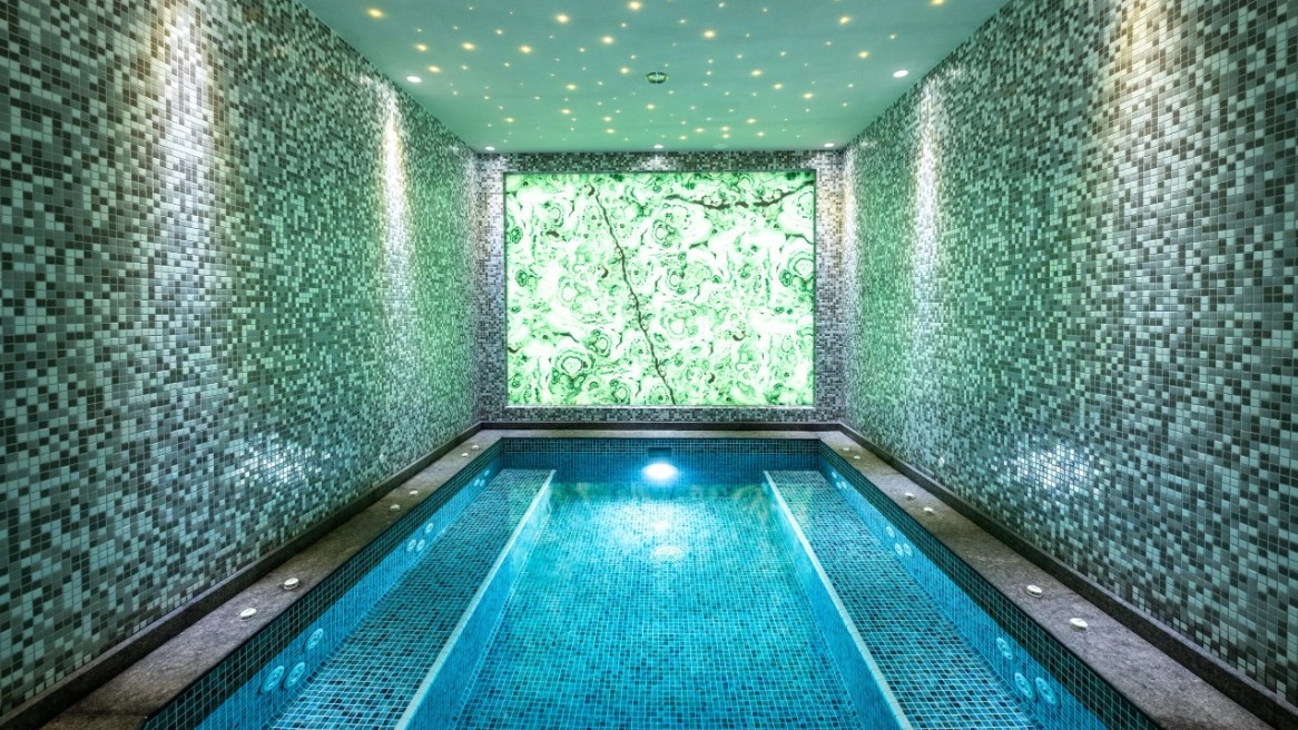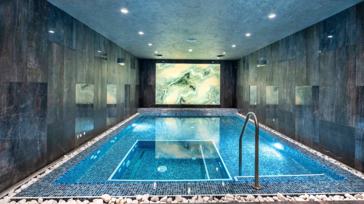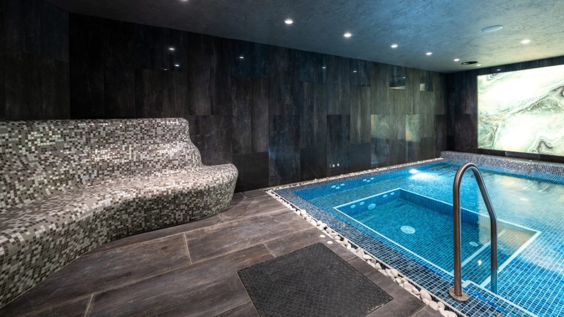 - Вътрешен голям плувен басейн с топла връзка към външно джакузи