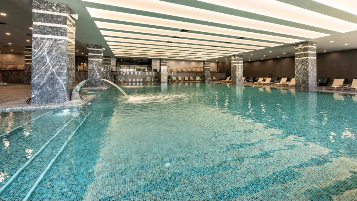 Спа центърът включва минерални басейни, сауни и терапевтични процедури.