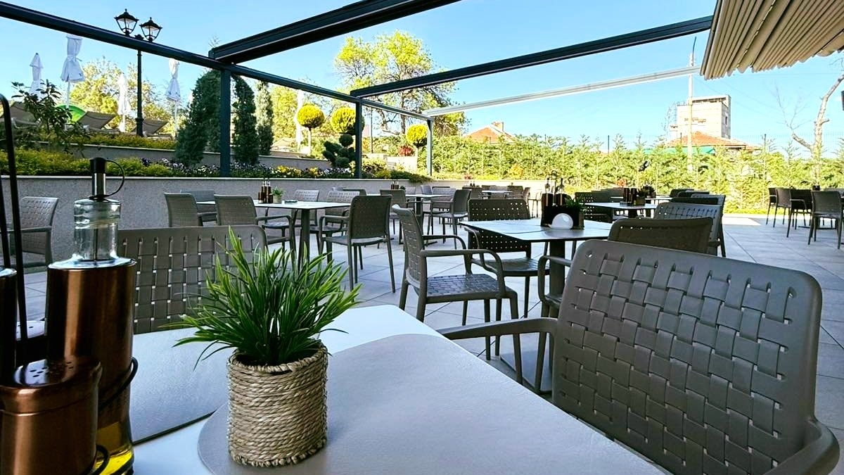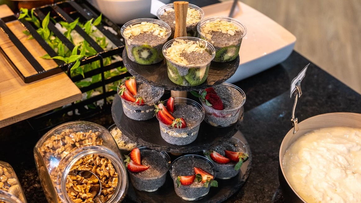 Ресторантът сервира здравословни ястия, а съоръженията включват фитнес, детски кът и семинарни зали.