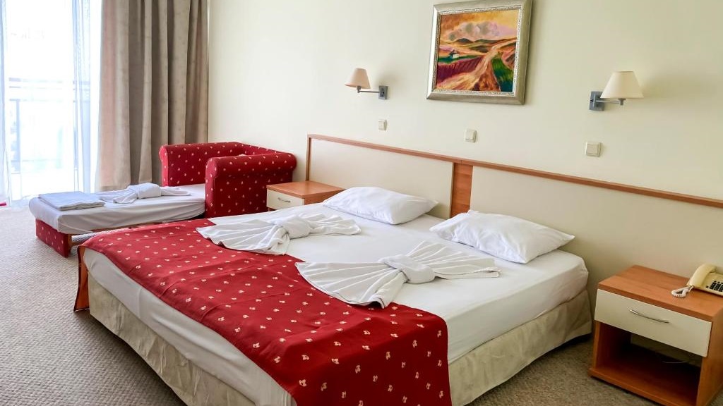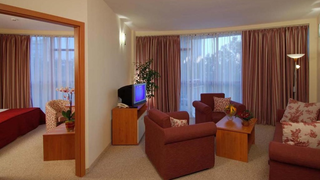 - Фамилна стая - площ от 28 кв. м., разполага с голяма спалня и разтегателен диван, бюро, 25-инчов телевизор, телефон, минибар, кът за почивка, климатик, гардероб, баня с душ кабина, сешоар, тераса