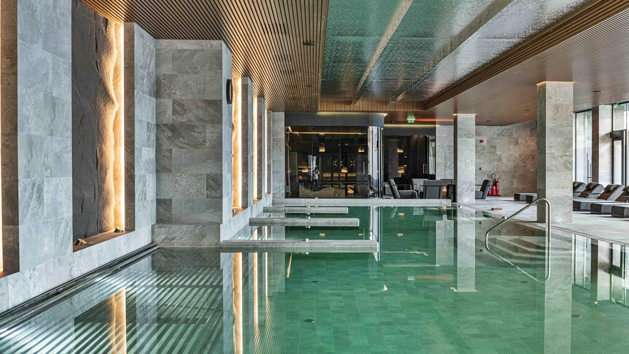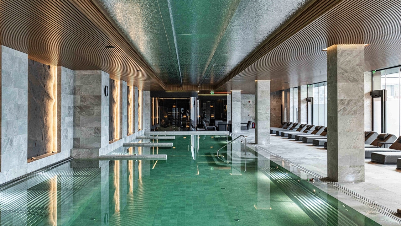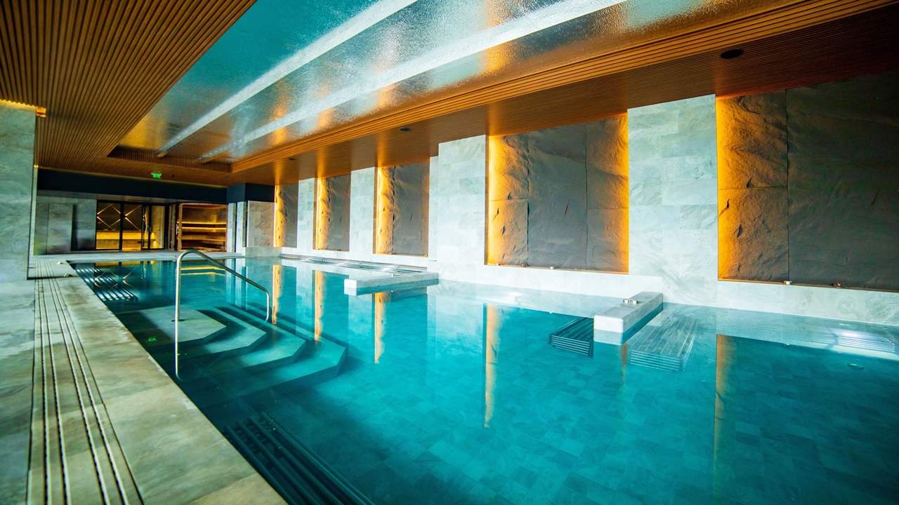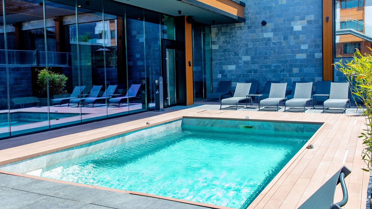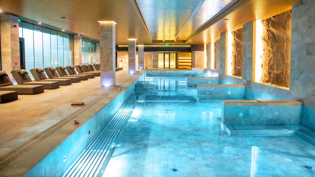 - Вътрешен акватоничен басейн разделен на три температурни зони и оборудван с 72 ултра мощни едно и дву-рутиращи джета