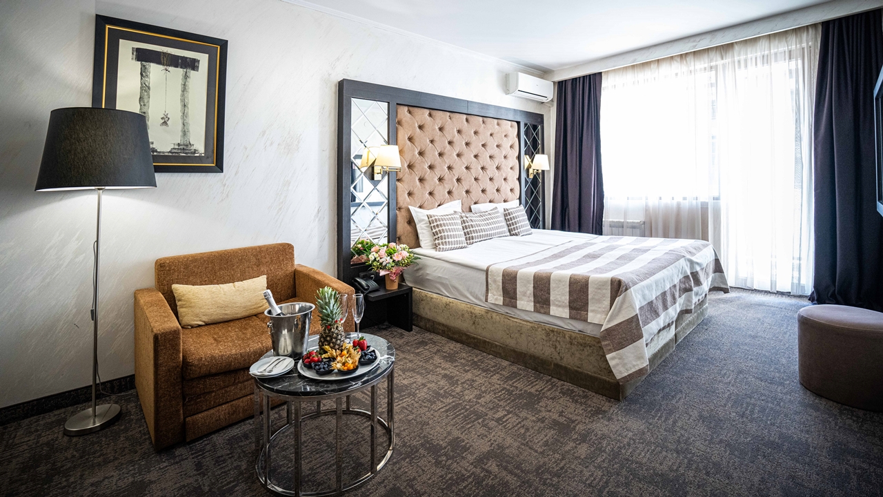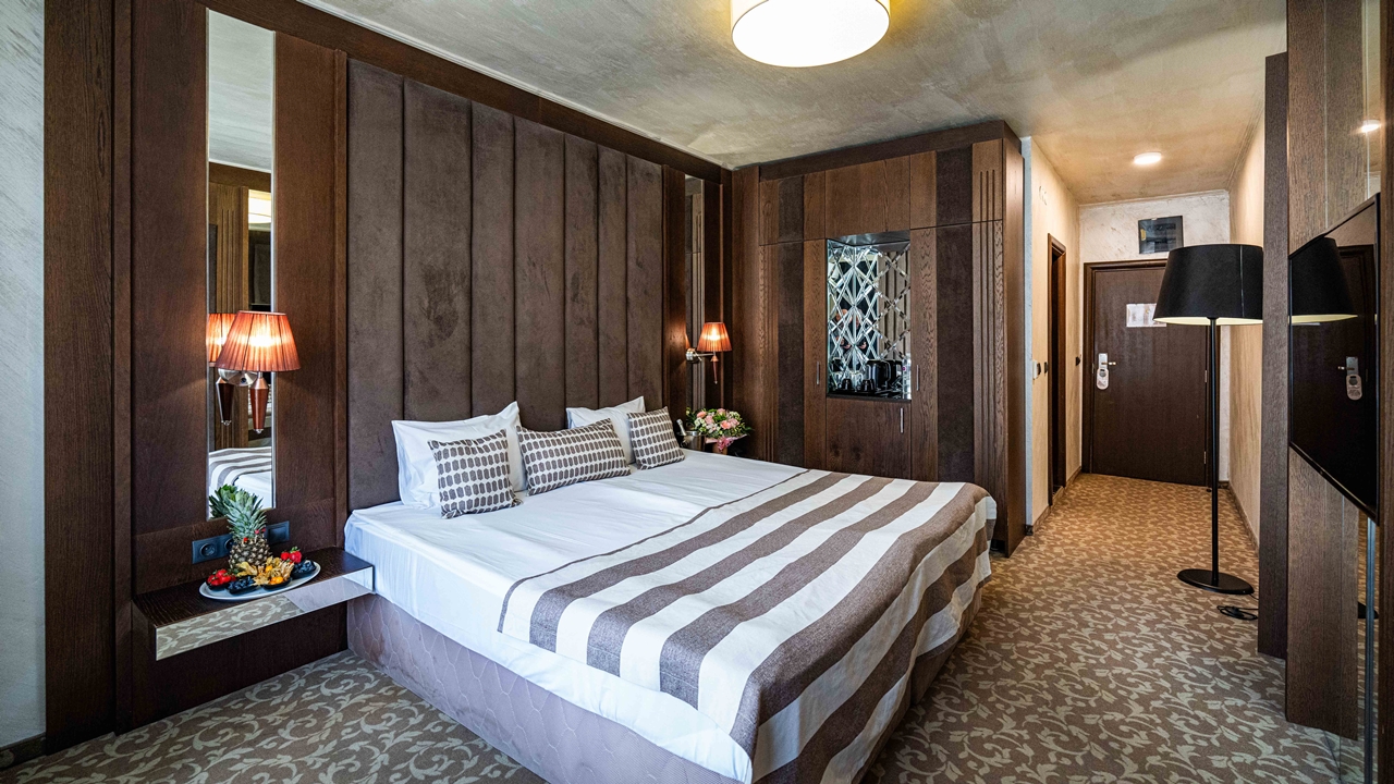- двойна стая екзекютив- ВИП стаите на хотела са отделени в секция А, за да предложат на гостите по-голямо усещане за уединение. Помещение с площ около 45 кв.м., разполага с комфортна King Size спалня, богат асортимент на артикули в мини бара, интерактивна телевизия и WiFi достъп, баня с душ кабина или вана, гардероб, климатична система с контрол, фотьойли, сейф, сешоар и тоалетни принадлежности, Blackout завеси, тераса с прекрасна гледка към Пирин планина и басейна