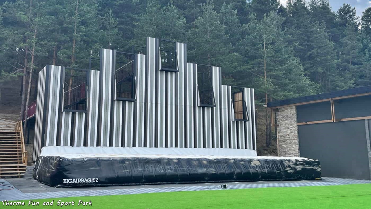 - Въздушна възглавница и кула за скачане с 3 нива - от 3, 4 и 6 метра – за лица над 12 год. и 120 см. (ако търсите силни усещания, не пропускайте кулата за свободни скокове с три платформи на височина от 3, 4 и 6 метра. Скоковете се изпълняват върху специална въздушна възглавница, разположена пред самата кула, ляво от голямата зала)