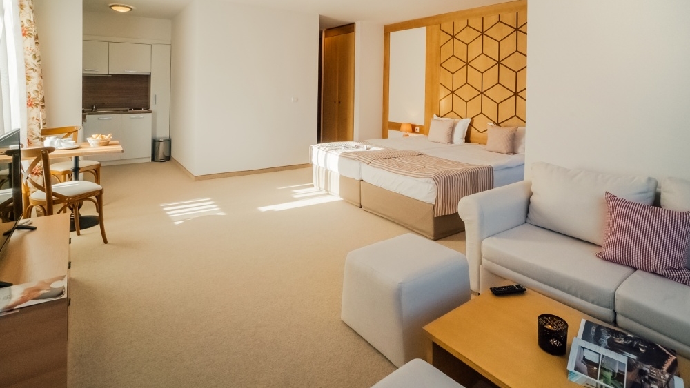 - двойна стая супериор - Луксозно обзаведена стая с две отделни легла, с директен достъп до Уелнес центъра. Оборудвана с всичко необходимо за пълноценен отдих
