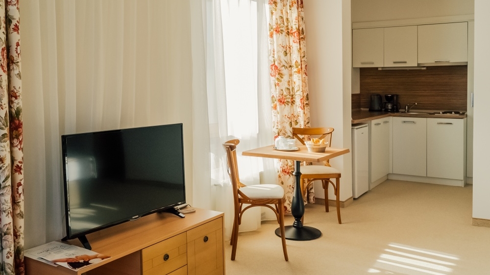 - апартамент с 2 спални - Просторен апартамент с две отделни спални, изцяло оборудвана всекидневна с кухненски бокс. Изключително подходящ за по-големи семейства, както и за всеки, който цени комфорта на обширните, функционално разпределени помещения.